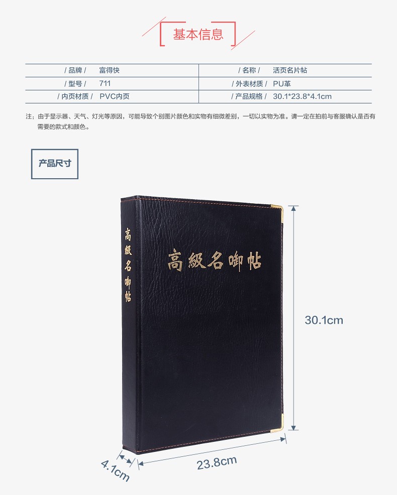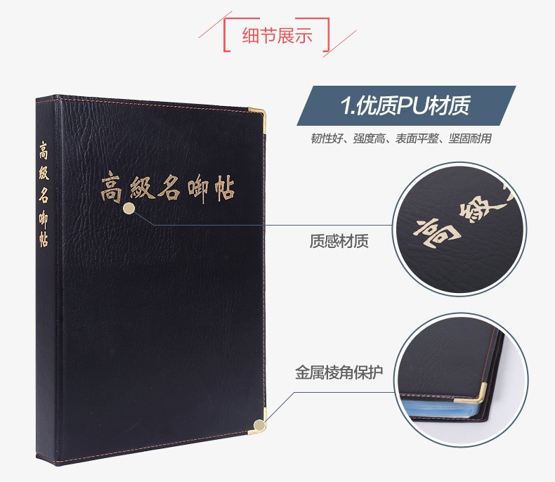 商品名称:富得快 大容量名片夹卡片盒名片收纳本活页仿皮名片册男士多卡位 111