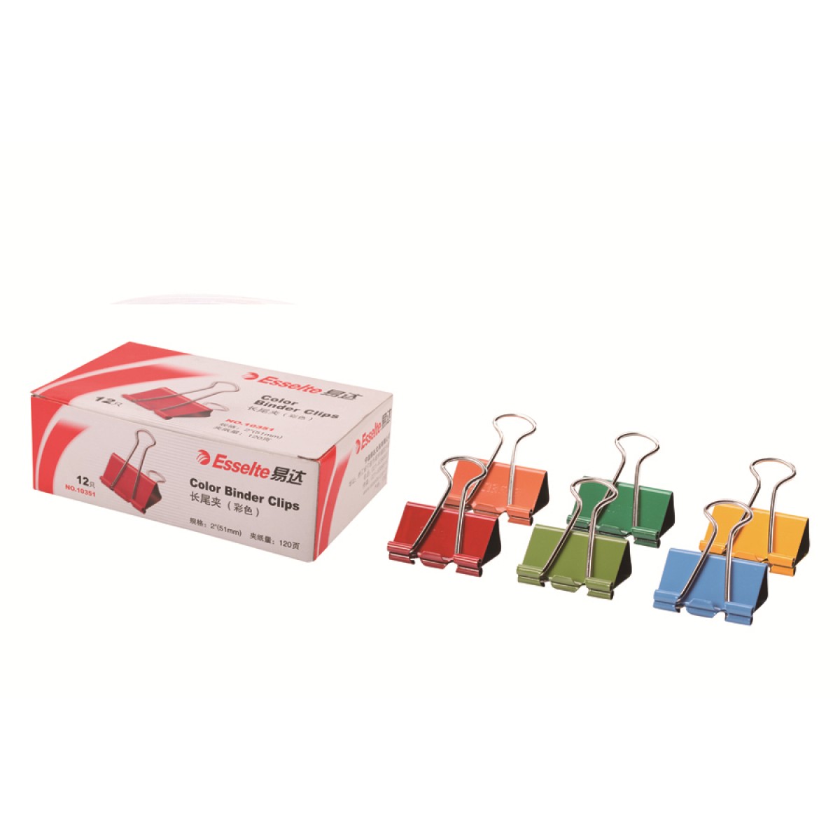 商品名称:易达/Esselte 10351 51mm彩色铁票夹子 长尾夹 燕尾夹 票夹