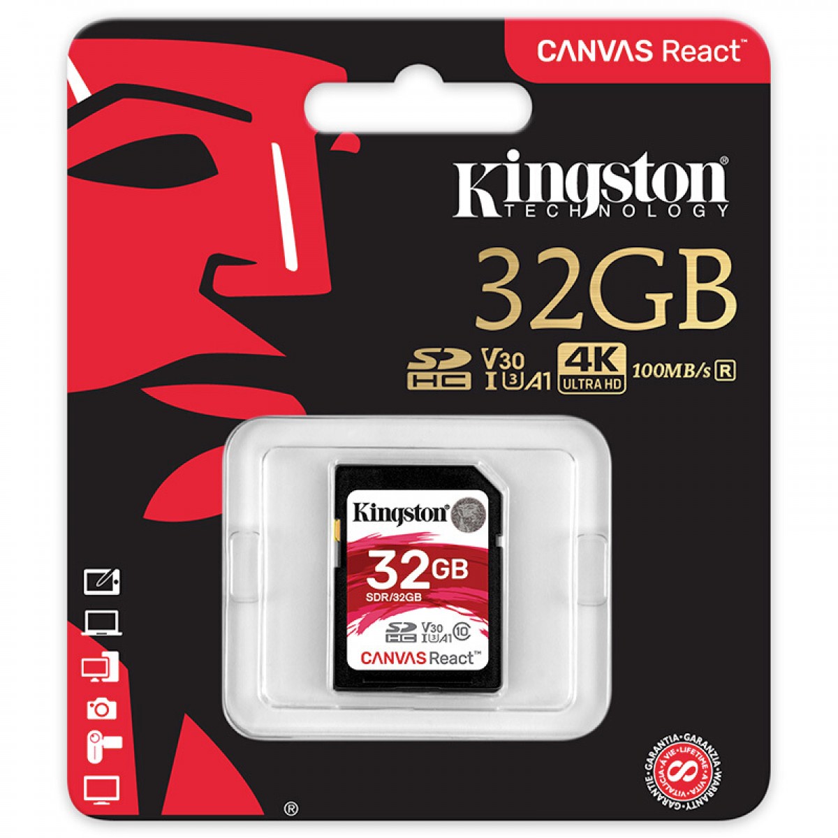商品名称:金士顿 SDHC卡SDR 存储卡相机内存卡U3支持4K读100M 32G
