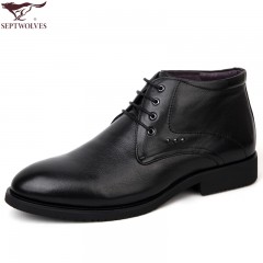 七匹狼 棉鞋冬季头层牛皮男士加绒保暖商务正装高帮真皮鞋