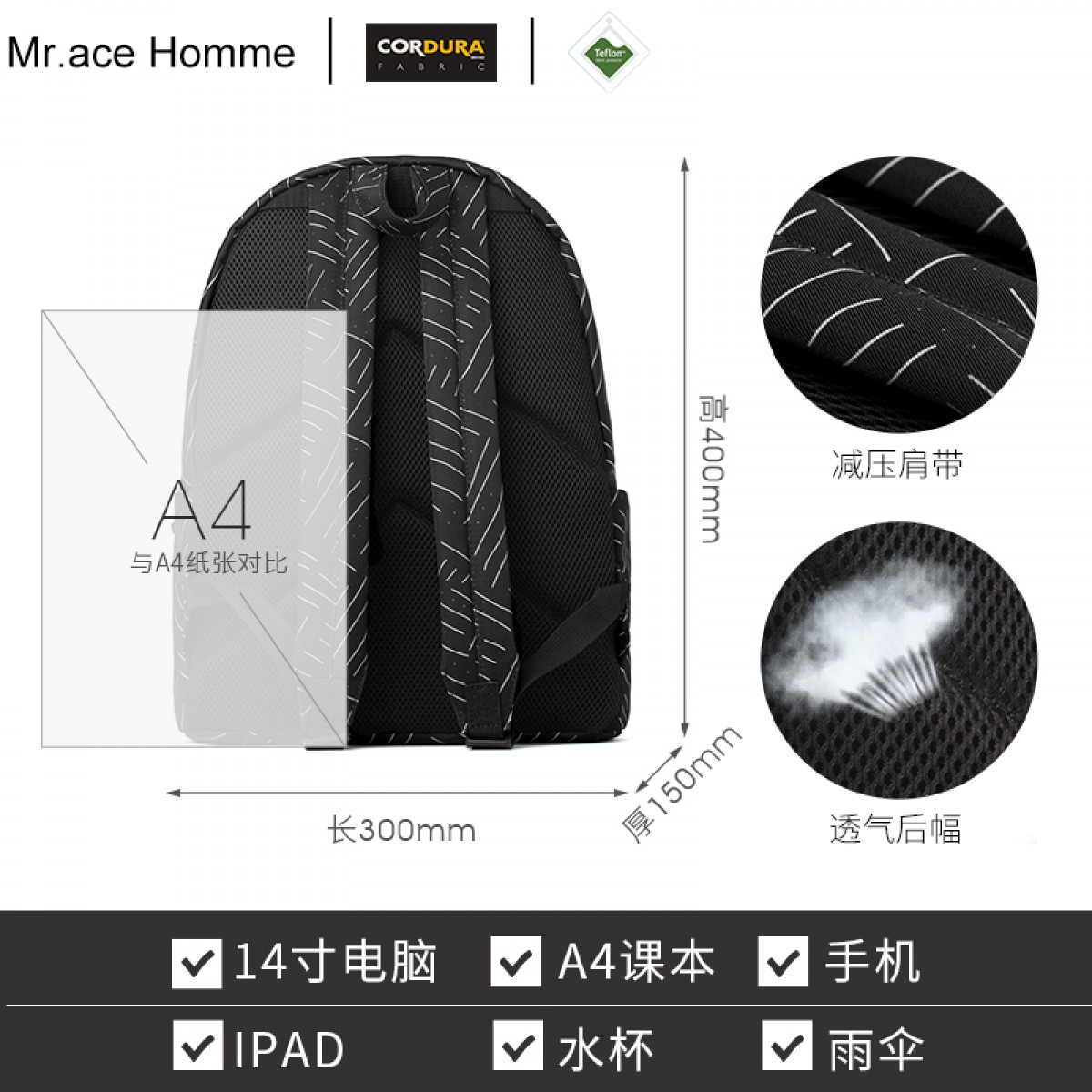 商品名称:Mr.ace Homme新款韩版时尚双肩包潮流学生书包男大容量背包女包包