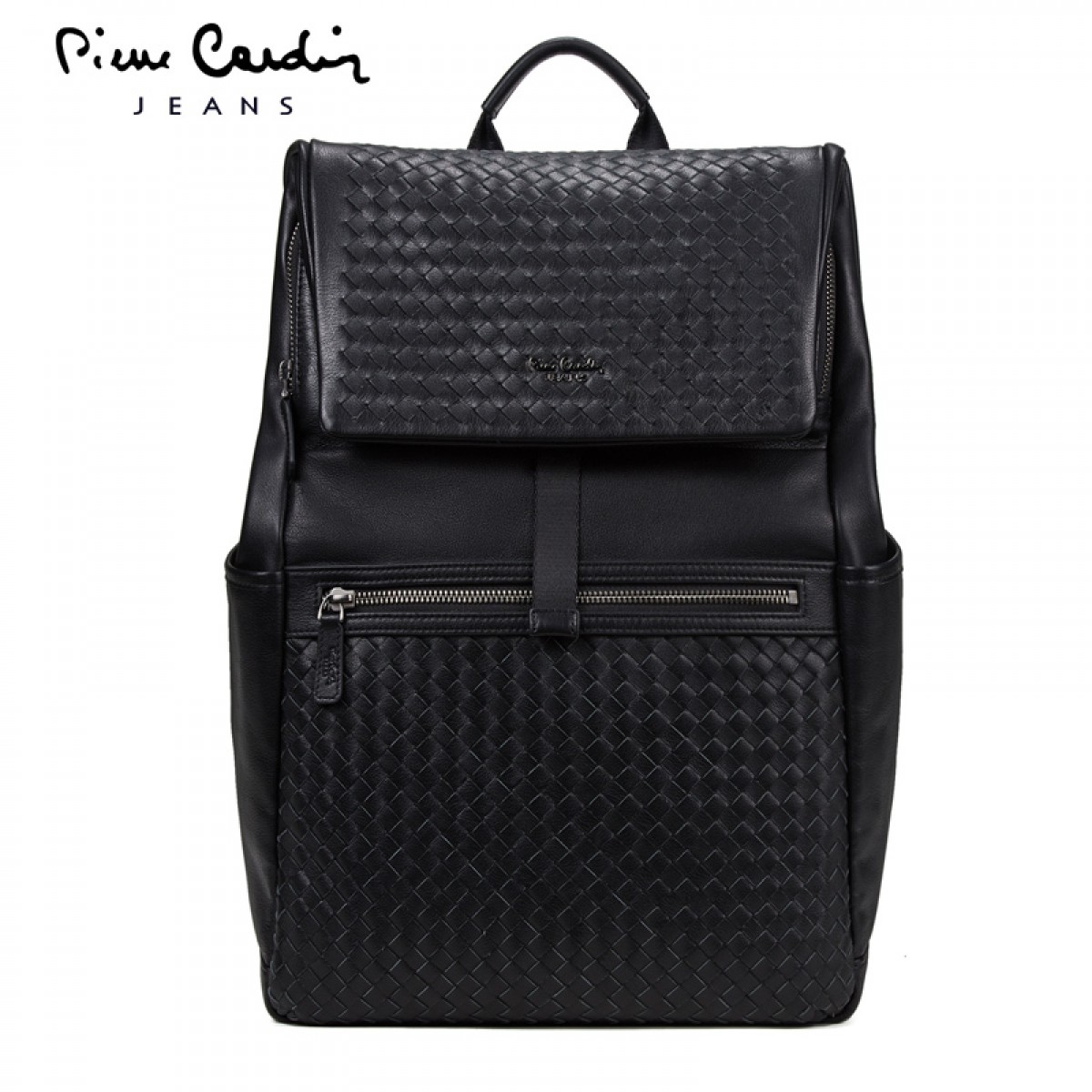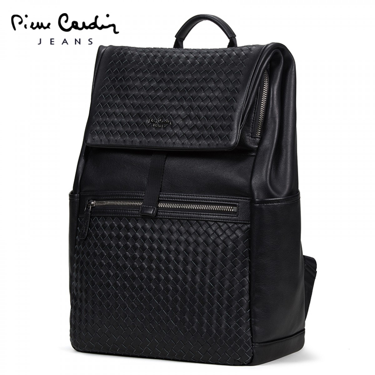 皮尔卡丹 双肩包男真皮编织新款休闲旅行背包书包休闲电脑包