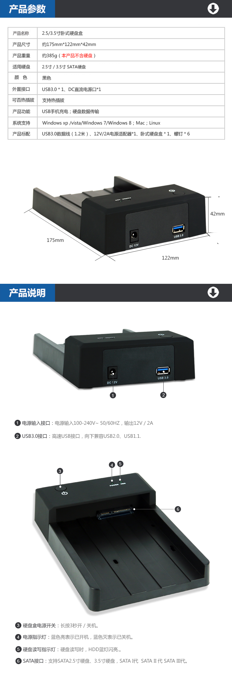 商品名称:金田 3.0卧式硬盘盒双硬盘底座脱机对拷SATA3 2.53.5 SSD用