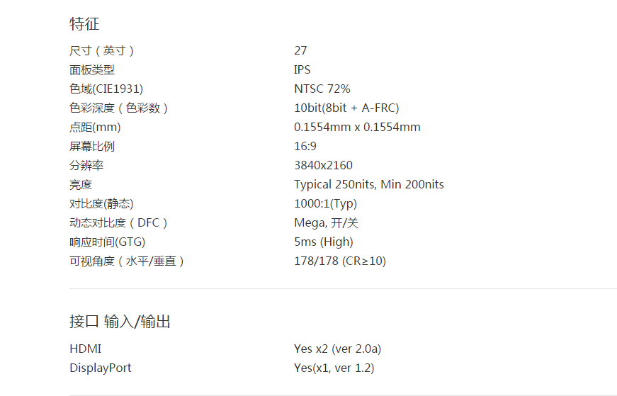 商品名称:LG 27寸IPS 4K 设计制图显示器可挂墙 27UD59-B