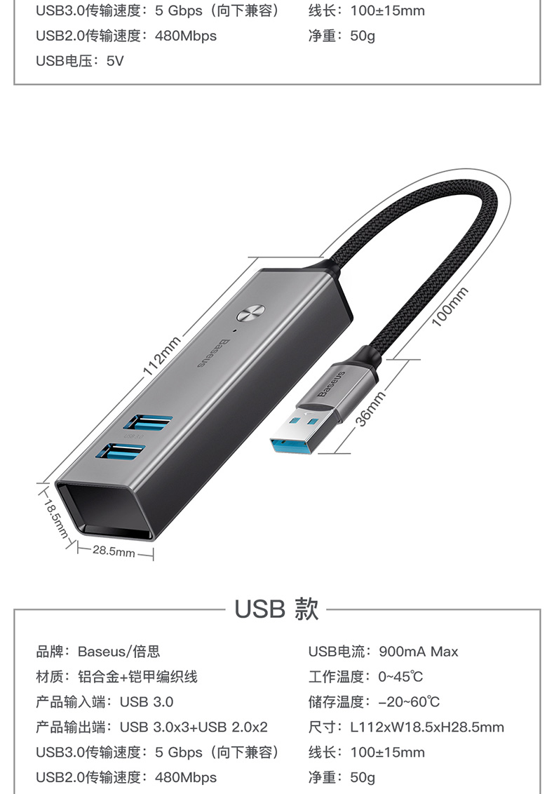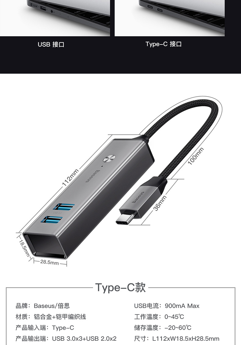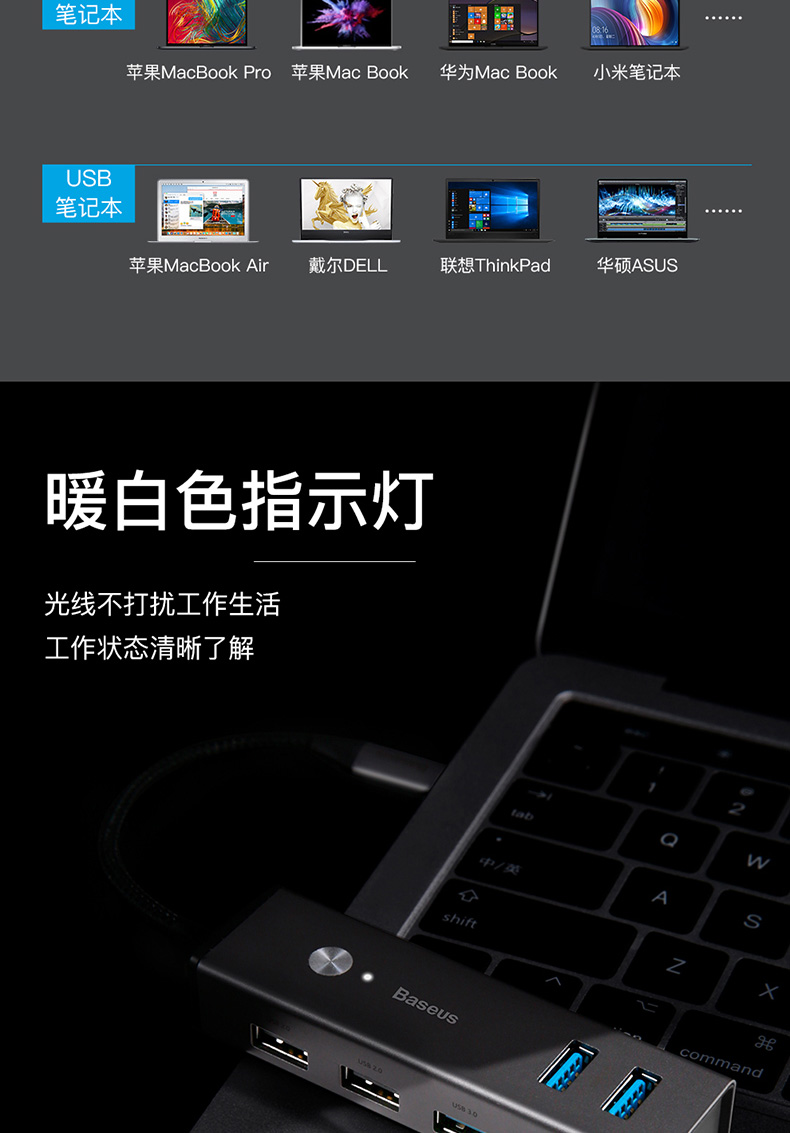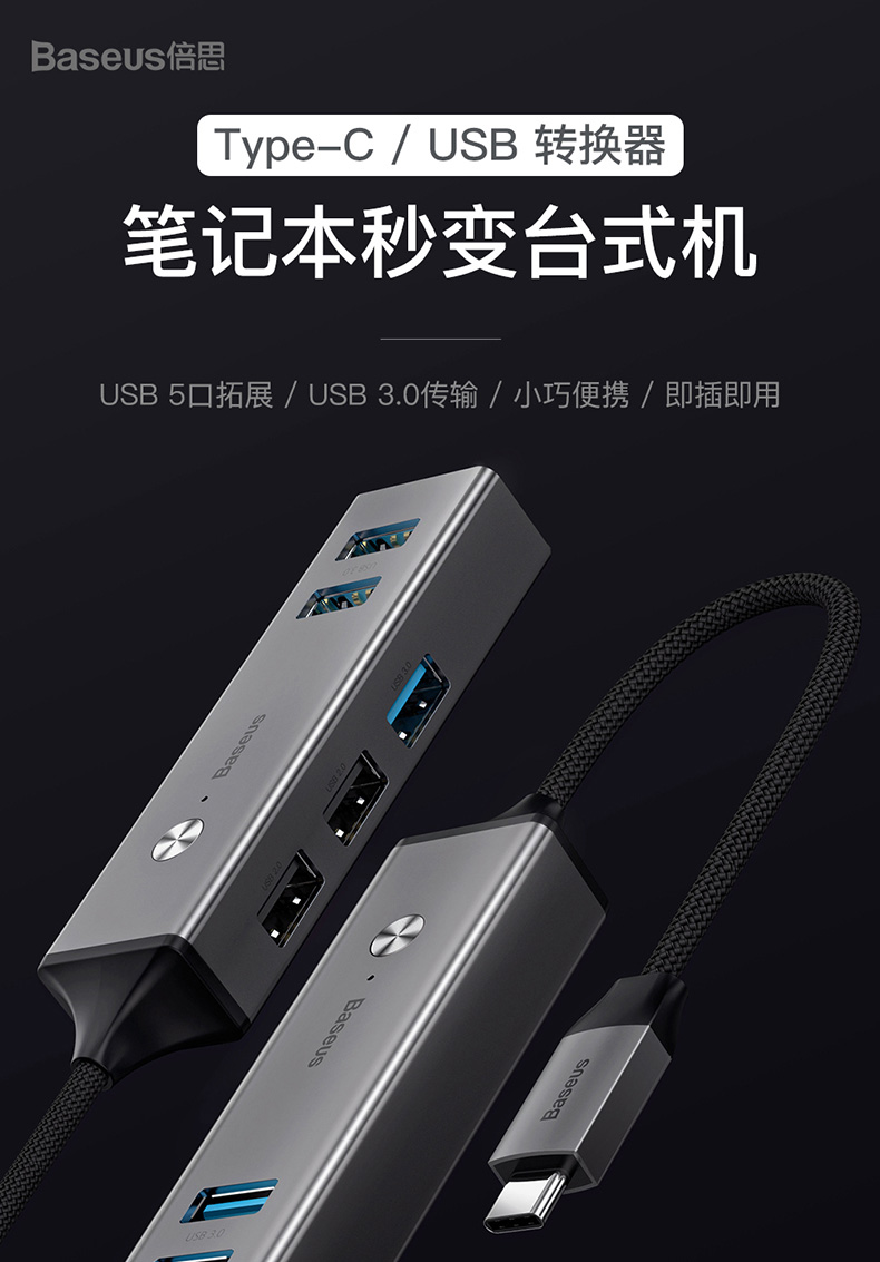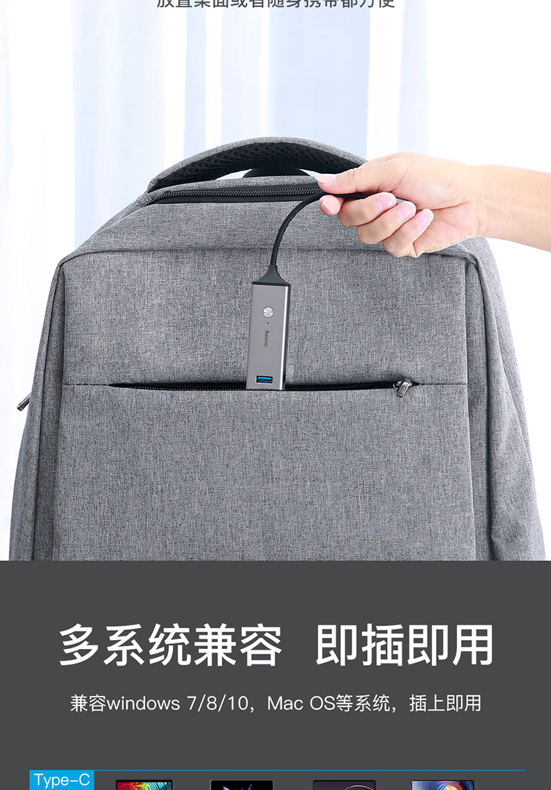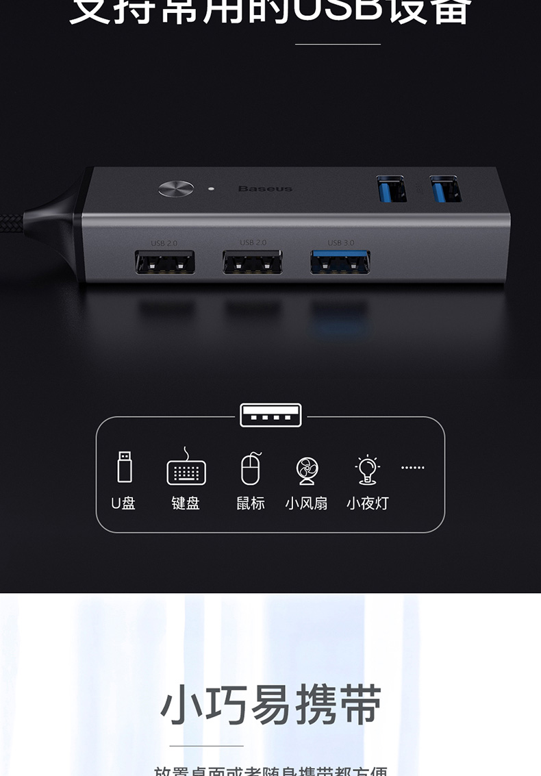 商品名称:倍思 Type-c转接头usb苹果电脑Macbookpro视频网络线HUB转换器HDMI小米USB3.0