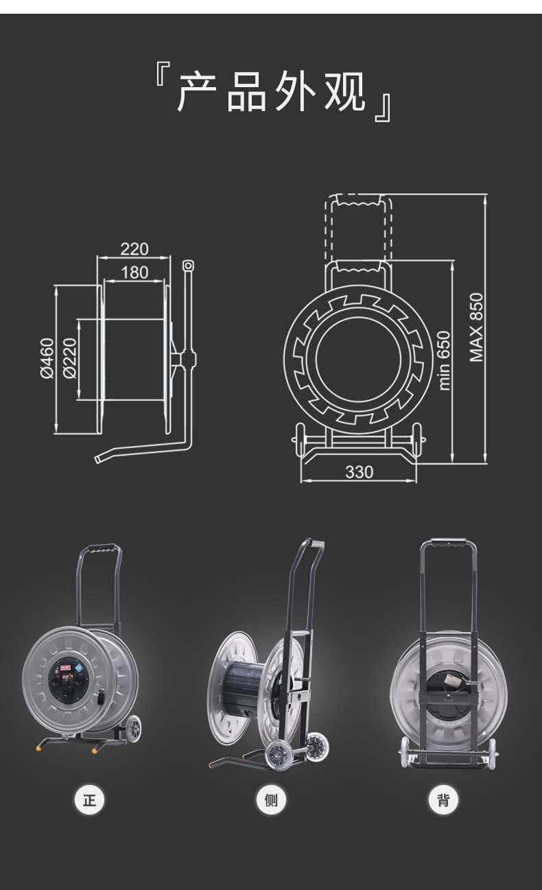 商品名称:野狼 YL-46FT 小车移动电缆盘插座板空盘带防水盖电源转换器