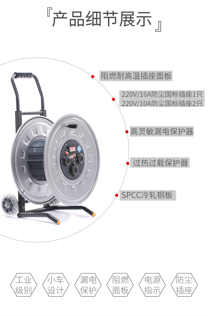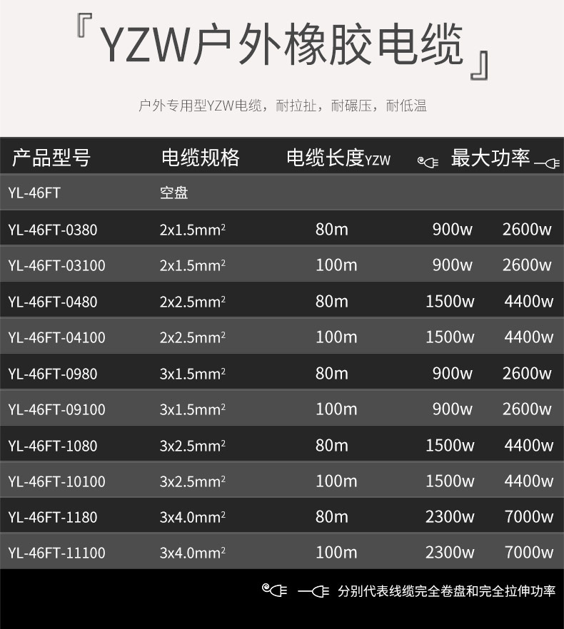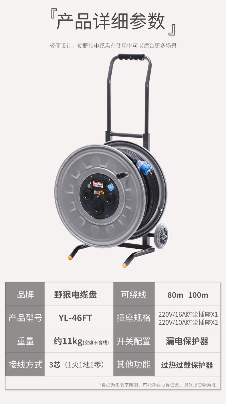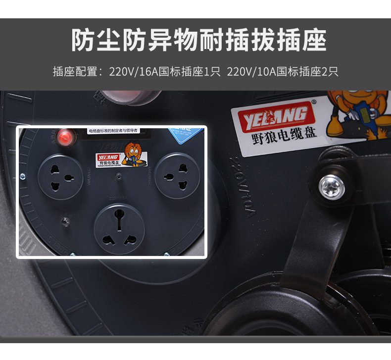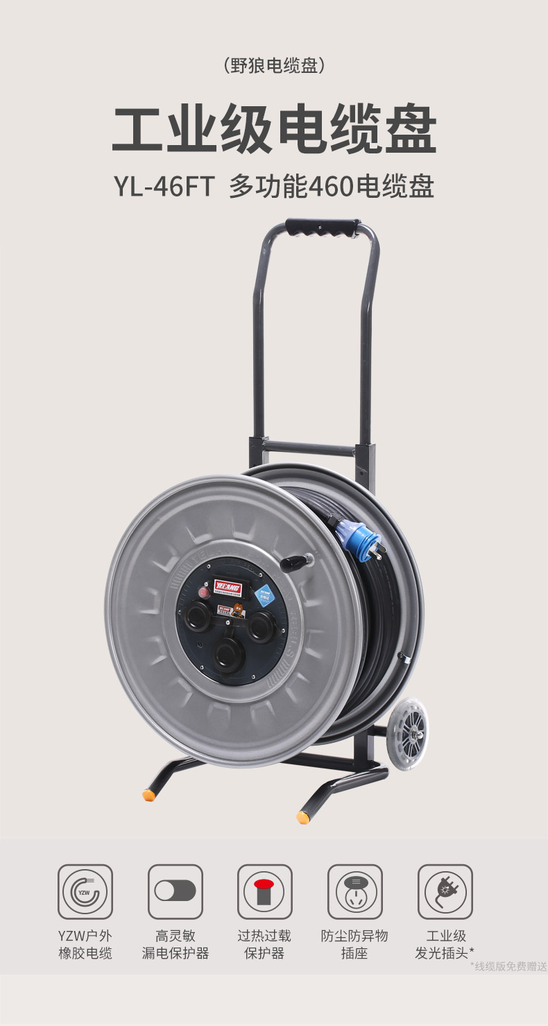 野狼 YL-46FT 小车移动电缆盘插座板空盘带防水盖电源转换器