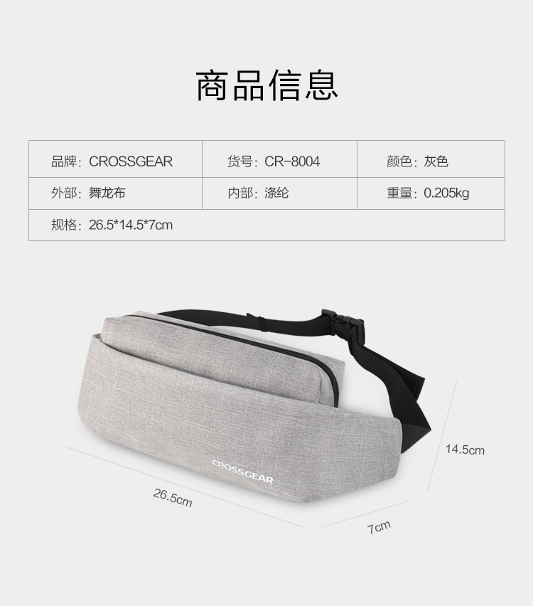 商品名称:CROSSGEAR 瑞士时尚韩版男士胸包运动休闲斜挎包 CR-8004