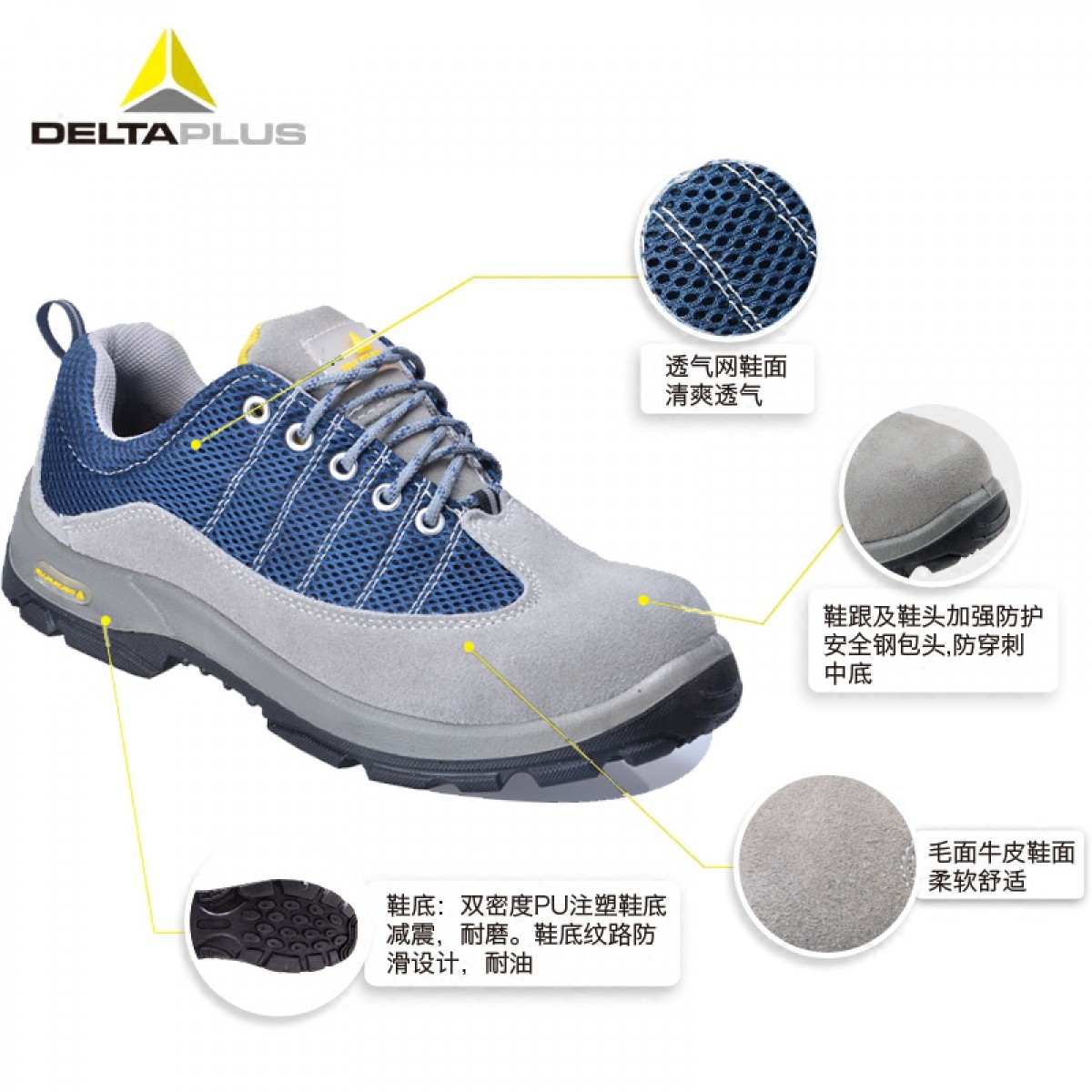 商品名称:代尔塔 透气劳保鞋夏季男防砸防刺穿钢包头防臭安全鞋工作鞋防静电