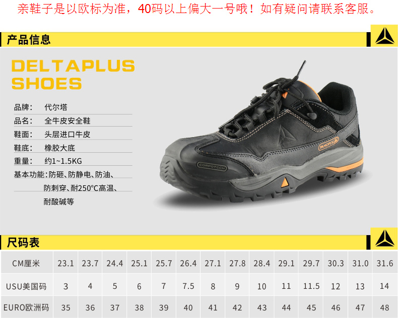商品名称:代尔塔 真牛皮劳保安全鞋防砸防刺穿耐高温油耐寒耐磨橡胶底耐酸碱