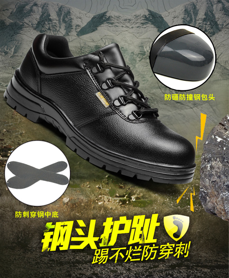 固邦盾 透气劳保鞋钢包头防砸防刺穿男牛皮耐磨防滑安全防护工作鞋