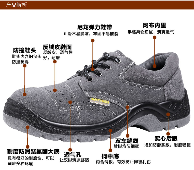 商品名称:固邦盾 夏季透气防臭工作防护男鞋实心耐磨钢包头 防砸防刺穿安全劳保鞋