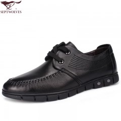 七匹狼皮鞋新款男士头层牛皮商务休闲系带真皮软底软面男鞋鞋子