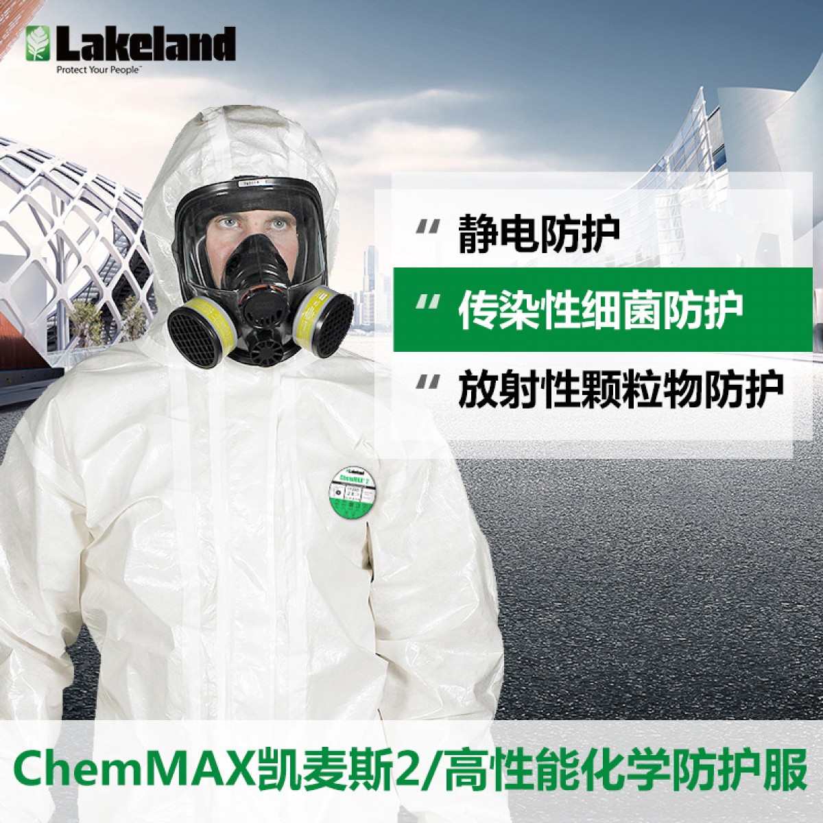 商品名称:雷克兰 防化服 带帽连体服工作服 防酸碱化学防护服防油无尘服