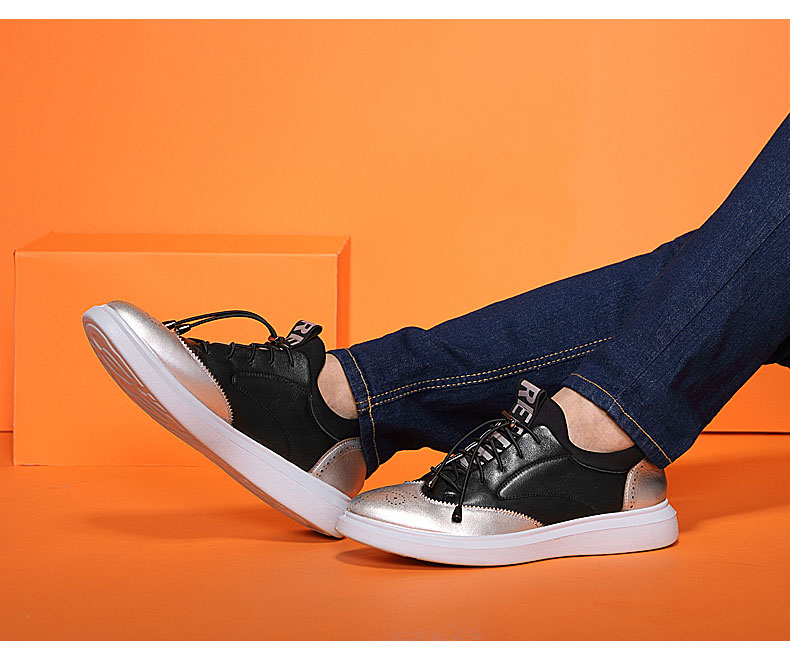 红蜻蜓 秋季新款男士日常休闲鞋真皮鞋镂空潮流板鞋