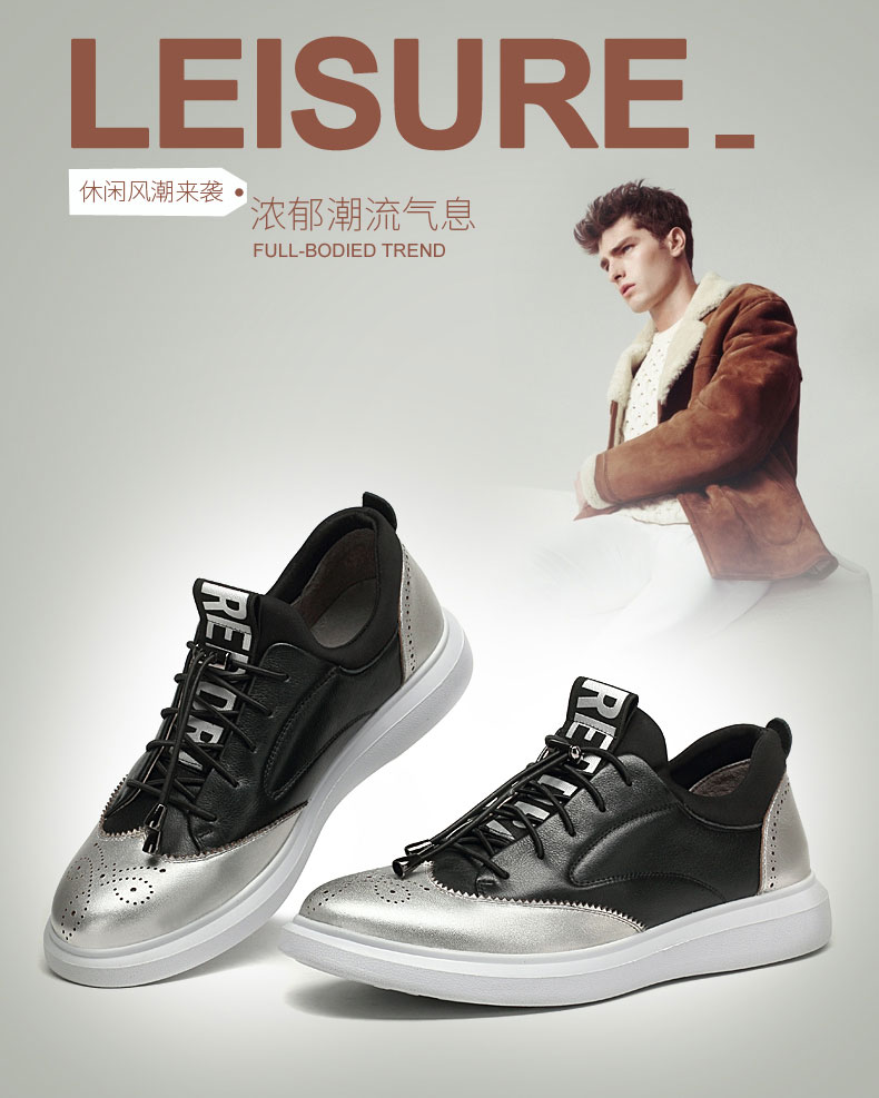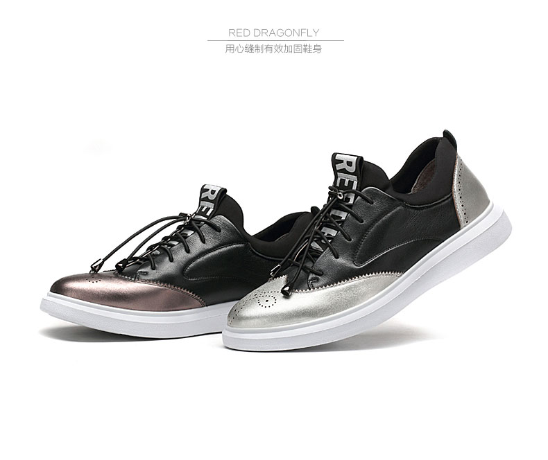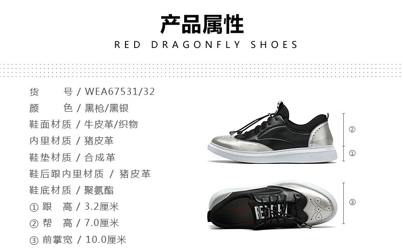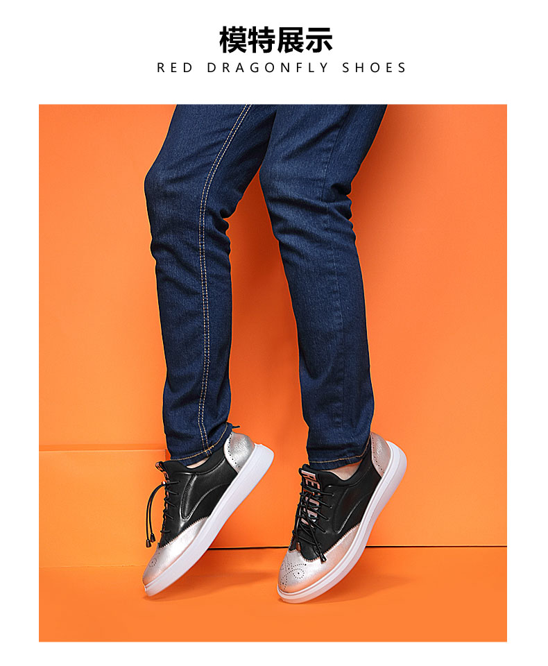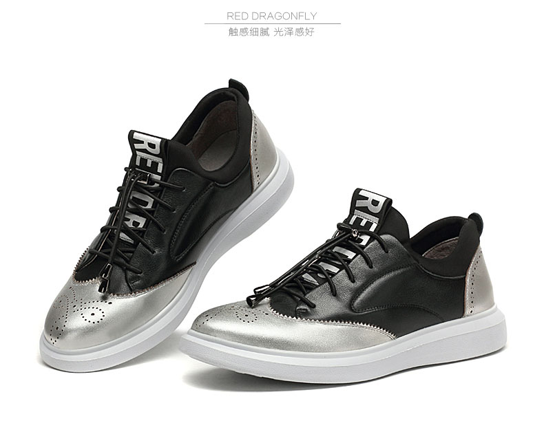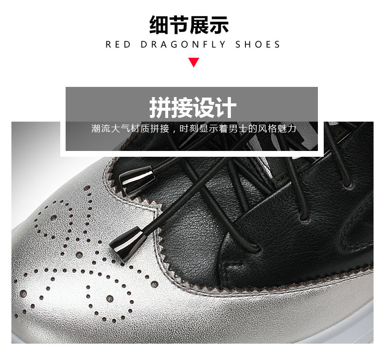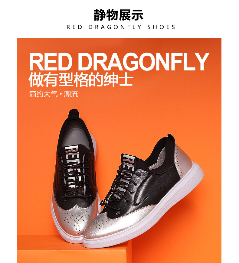 商品名称:红蜻蜓 秋季新款男士日常休闲鞋真皮鞋镂空潮流板鞋