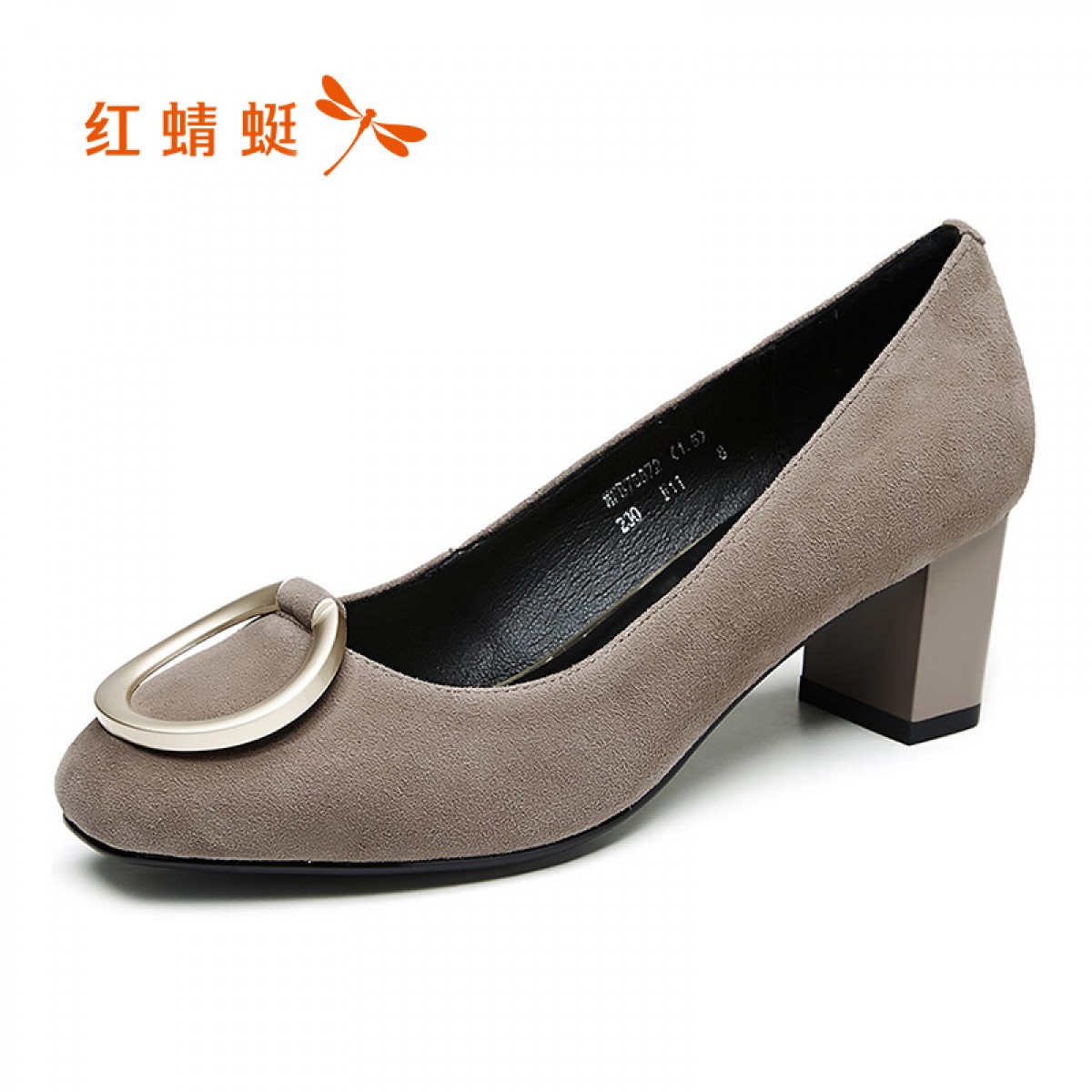 商品名称:红蜻蜓 女鞋秋季新款时尚方头圆扣高跟鞋粗跟皮鞋子女单鞋
