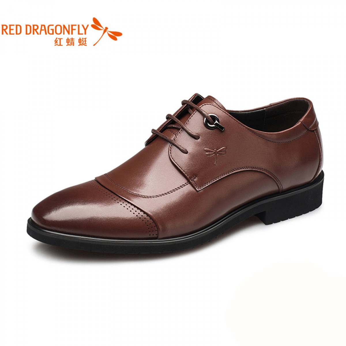 红蜻蜓 真皮男鞋 春季新款商务男士皮鞋正装休闲透气系带单鞋