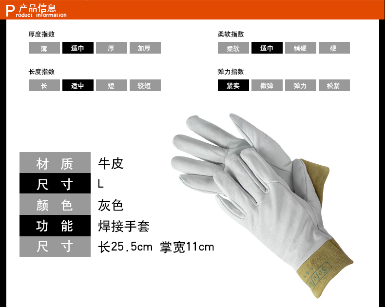 商品名称:威特仕 羊皮电焊劳保手套工业耐高温防烫氩弧焊焊工手套防火隔热10-1008