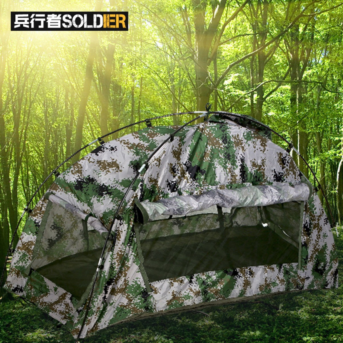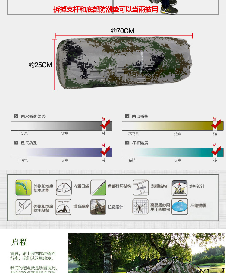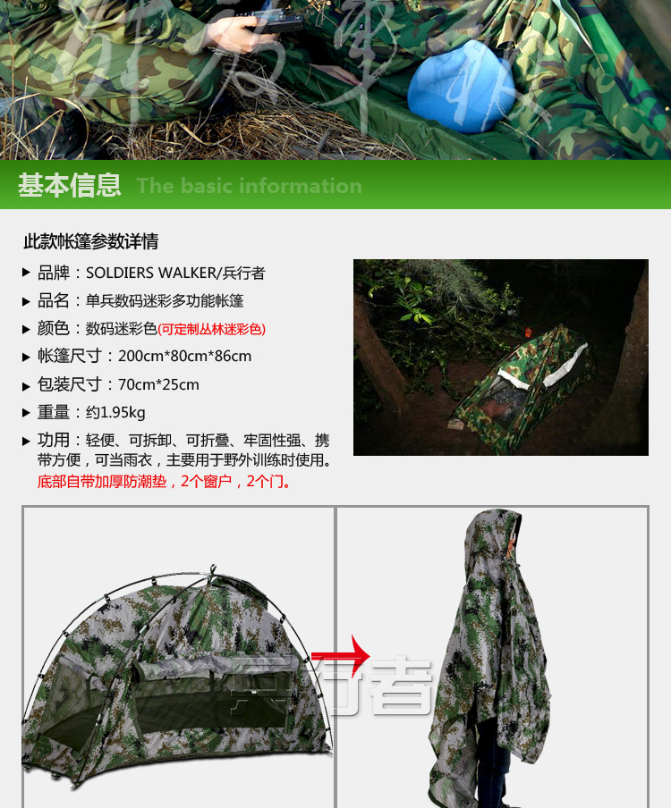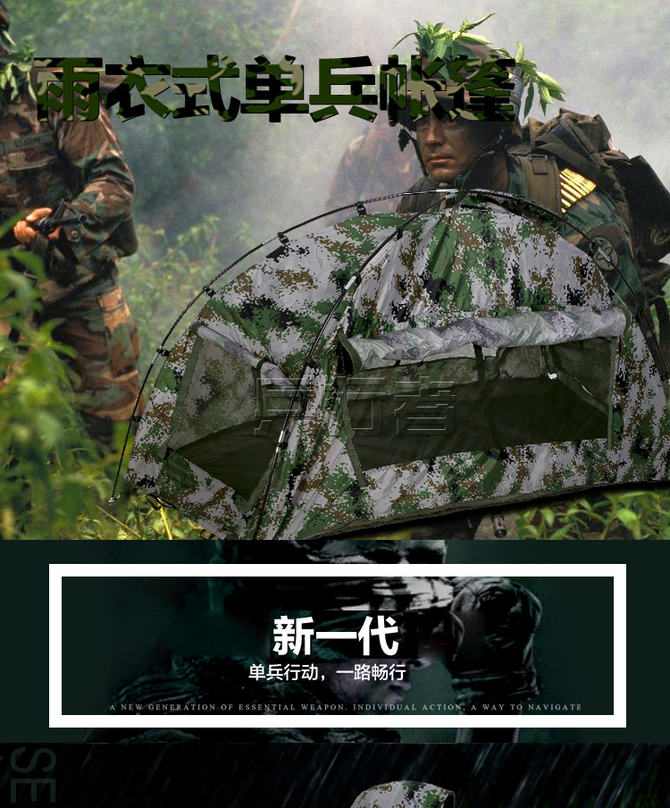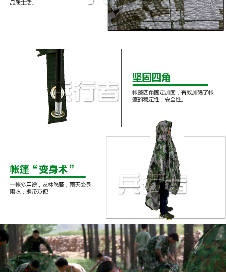 商品名称:兵行者 野战户外帐篷迷彩雨衣 包含防潮垫 迷彩帐篷 BXZ-M018