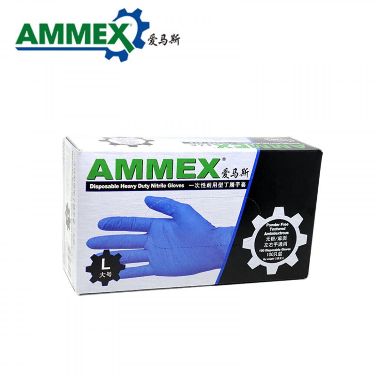 商品名称:AMMEX/爱马斯 一次性蓝色耐用型手套丁晴手套实验室家务耐油耐酸碱HD