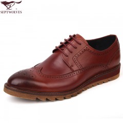 七匹狼 男鞋头层牛皮布洛克雕花男士商务正装系带真皮皮鞋子