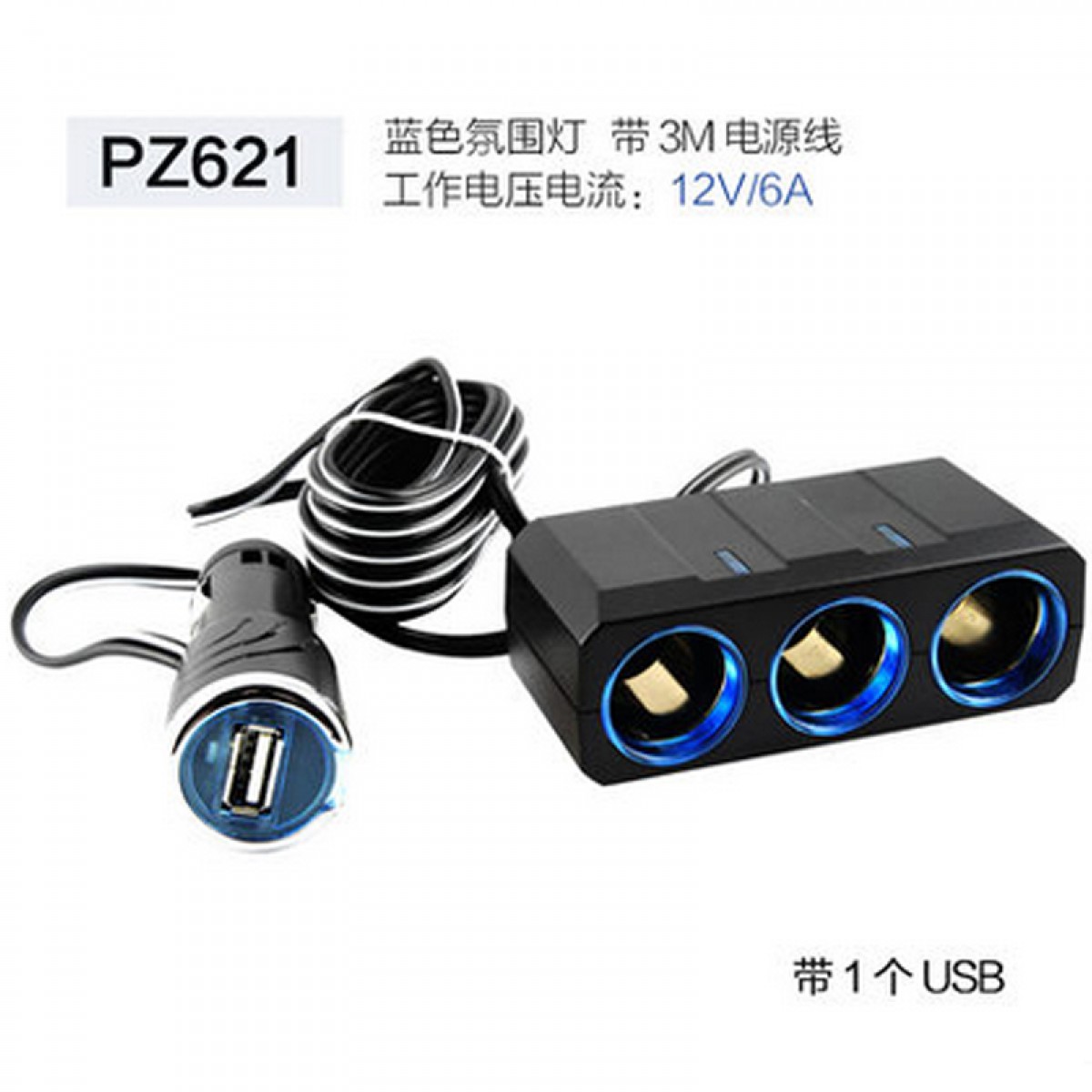 商品名称:YAC 汽车点烟器一拖二带灯一分二 车载充电器 PZ-610