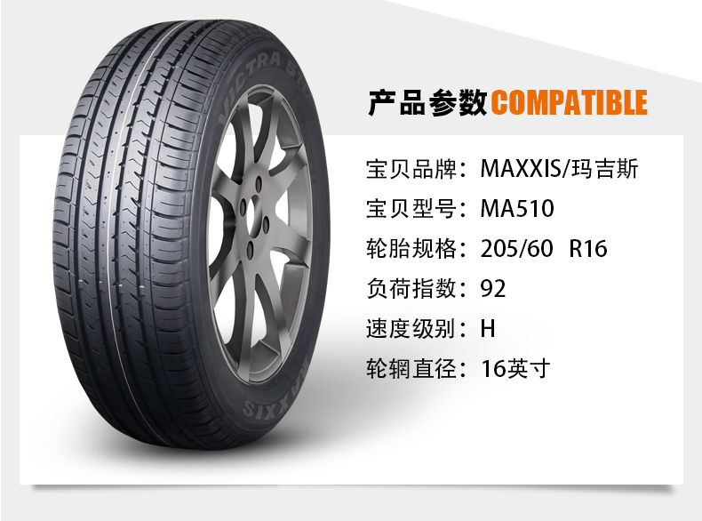 商品名称:玛吉斯 轮胎MA510 205/60 R16 92H 英朗科鲁兹雪铁龙C3XR标致2008