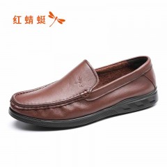 红蜻蜓 男鞋冬季新款真皮休闲皮鞋低跟套脚乐福鞋软面皮老头鞋