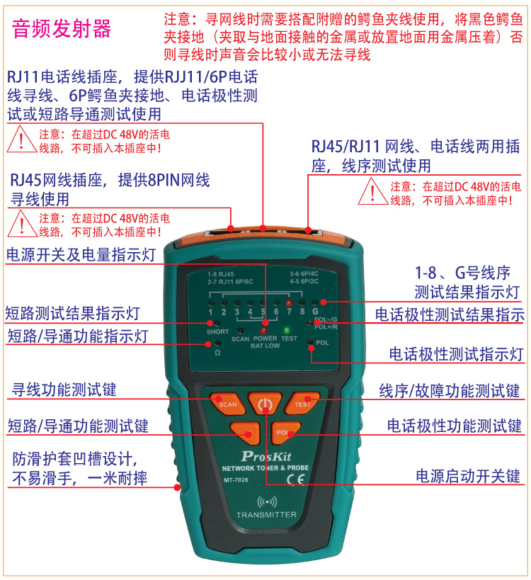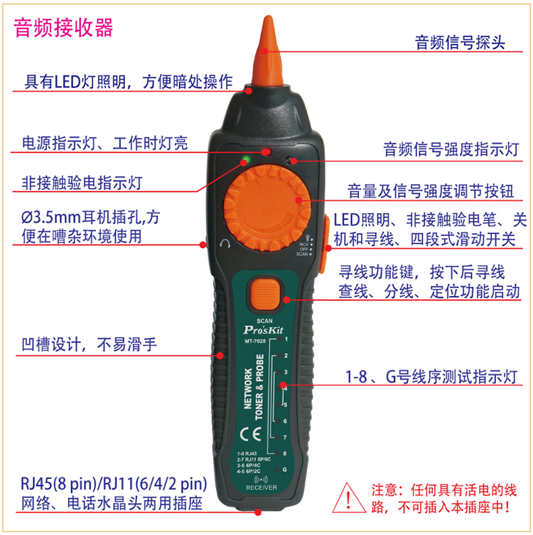 宝工 音频网络查线器 电话测试仪 网吧寻线仪器仪表 MT-7028