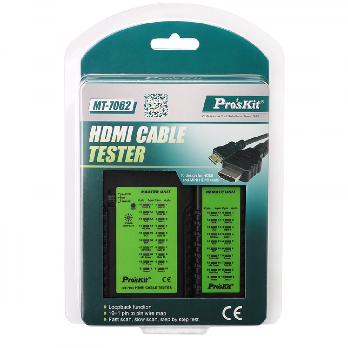 MT-7062 HDMI线缆测试器提供快速、精准的确认HDMI与 MINI HDMI电缆接线状况,侦测线材的导通并显示主机和远端19接脚和屏蔽的连接状态。