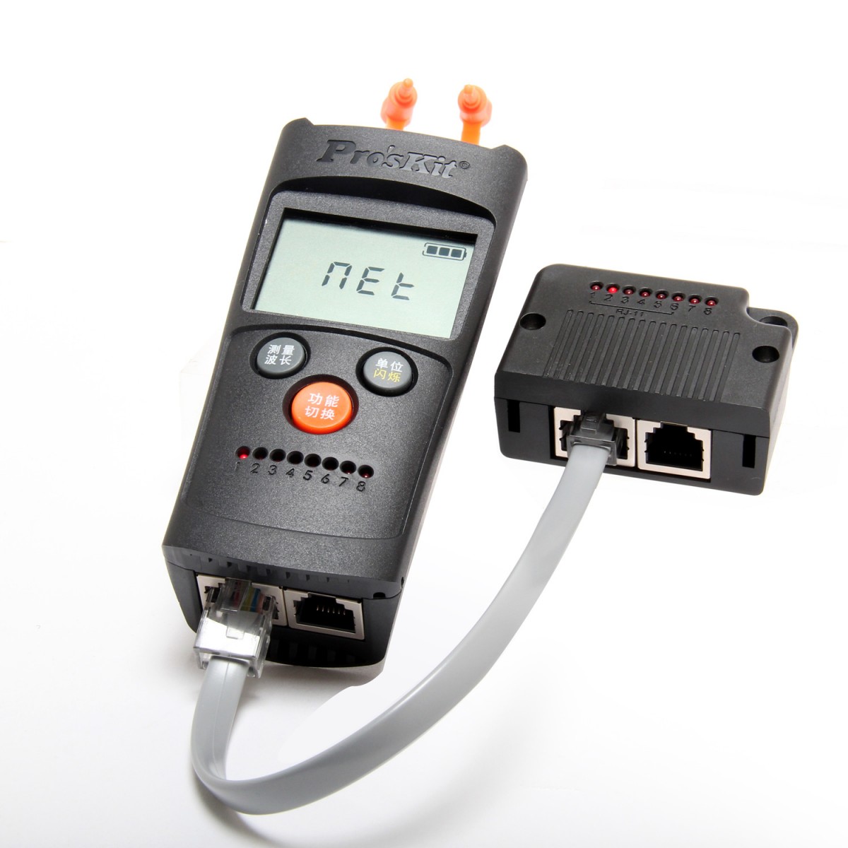 自动扫描检测线序及状态(指示灯1~8 LEDs) 适用于RJ-11,RJ-45网路线测试 测试距离: 600M
