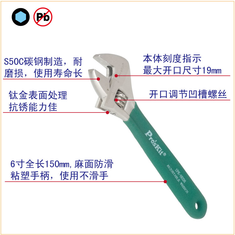 1PK-H026 6寸钛金防滑活动扳手(150mm)
