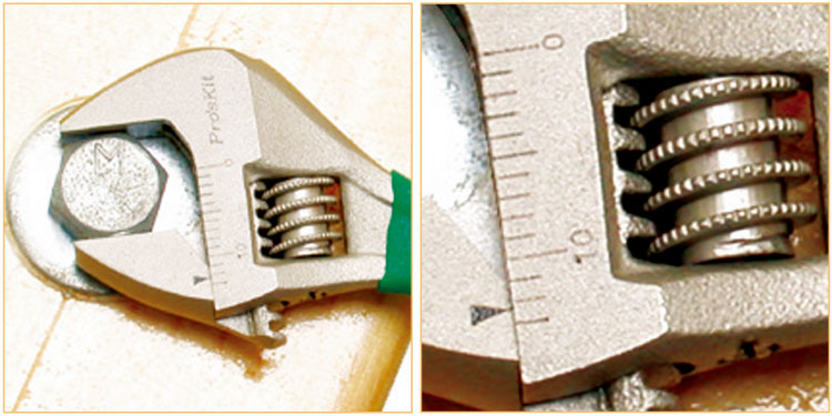 凹槽螺丝可调整扳手口径大小。