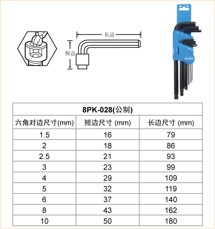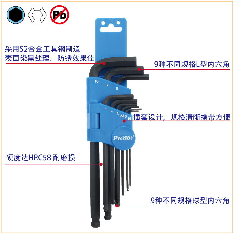 商品名称:宝工 #39;skit S2球型六角扳手组(9支组)1.5~10mm 8PK-028