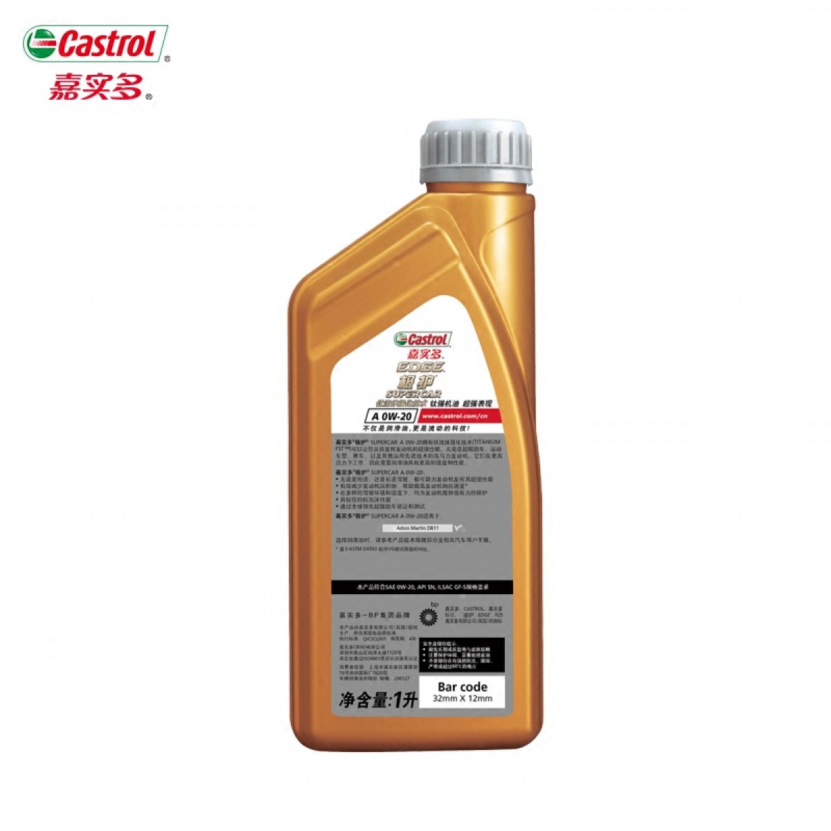商品名称:嘉实多 极护 钛流体技术 全合成机油 润滑油 Supercar A 0W-20 1L