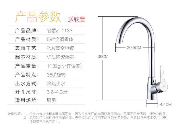 商品名称:名爵 厨房水龙头 全铜洗菜盆水龙头可旋转水槽龙头 MEJUEZ-1133