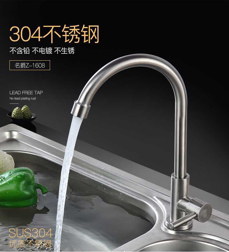 商品名称:名爵 无铅304不锈钢厨房单冷水龙头 水槽洗菜盆龙头 MEJUEZ-1608