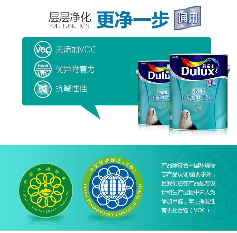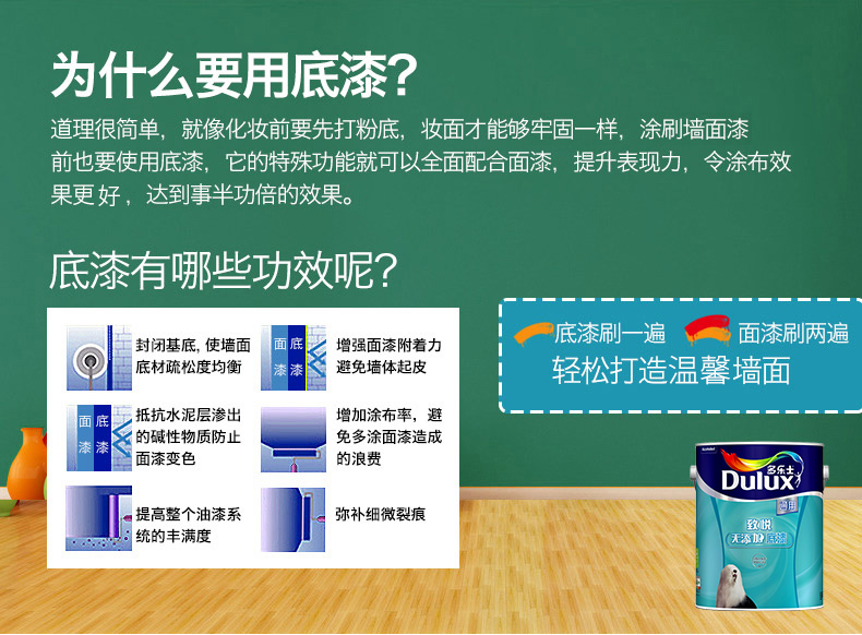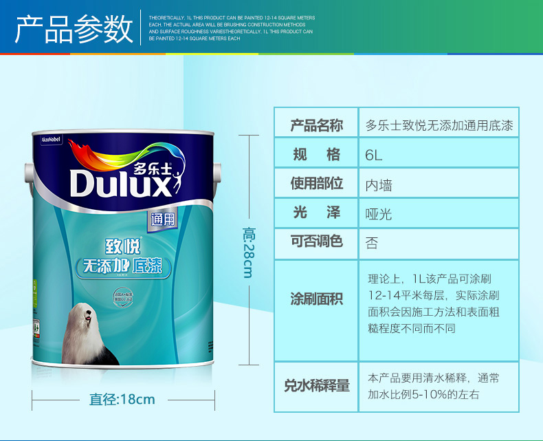 商品名称:多乐士漆 致悦通用无添加6L单桶底漆乳胶漆油漆涂料