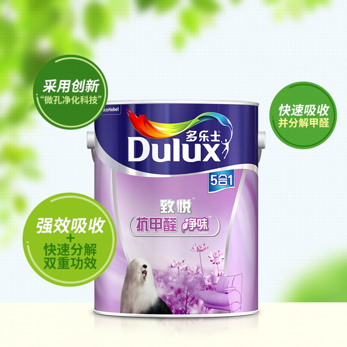 商品名称:多乐士 乳胶漆致悦抗甲醛净味五合一6L面漆乳胶漆内墙漆涂料 A744 R1