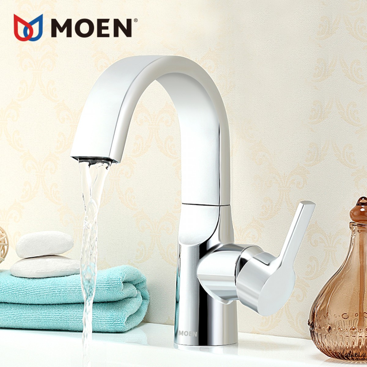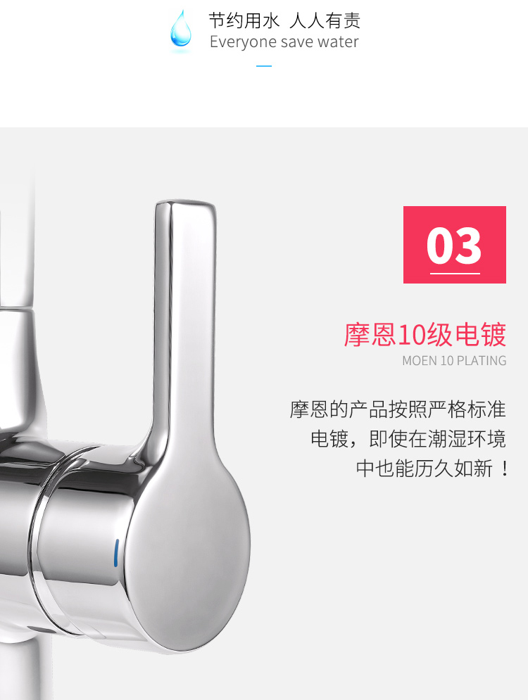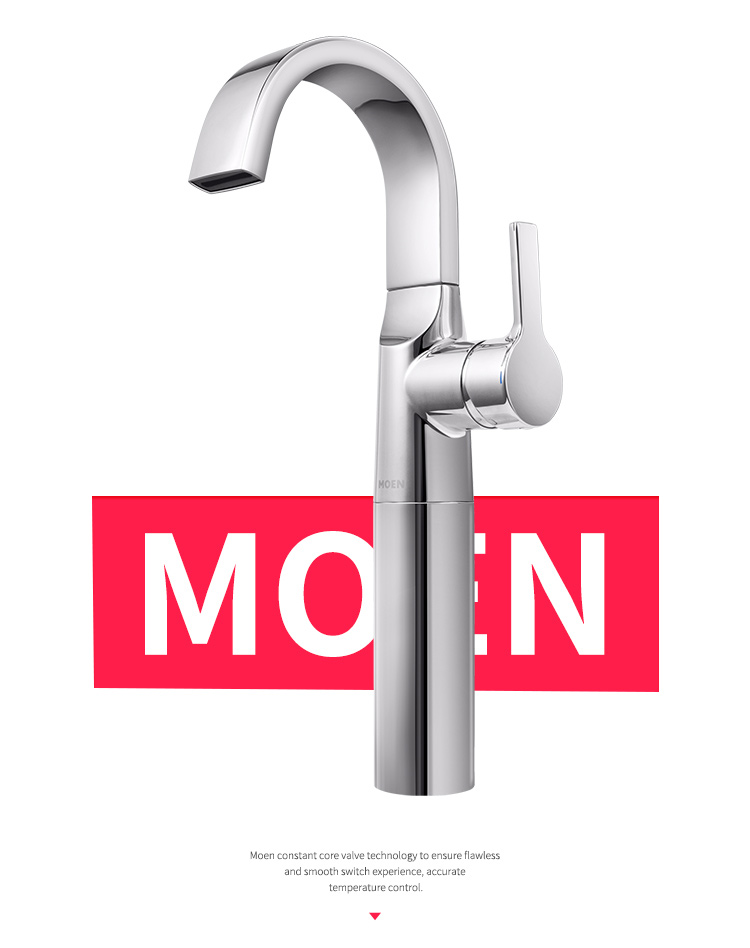 摩恩 卫生间台盆高抛单孔单把单孔面盆冷热水龙头瀑布出水 63121