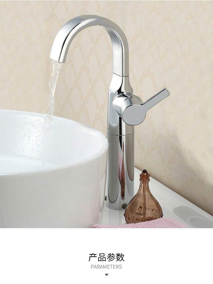 商品名称:摩恩 卫生间台盆高抛单孔单把单孔面盆冷热水龙头瀑布出水 63121