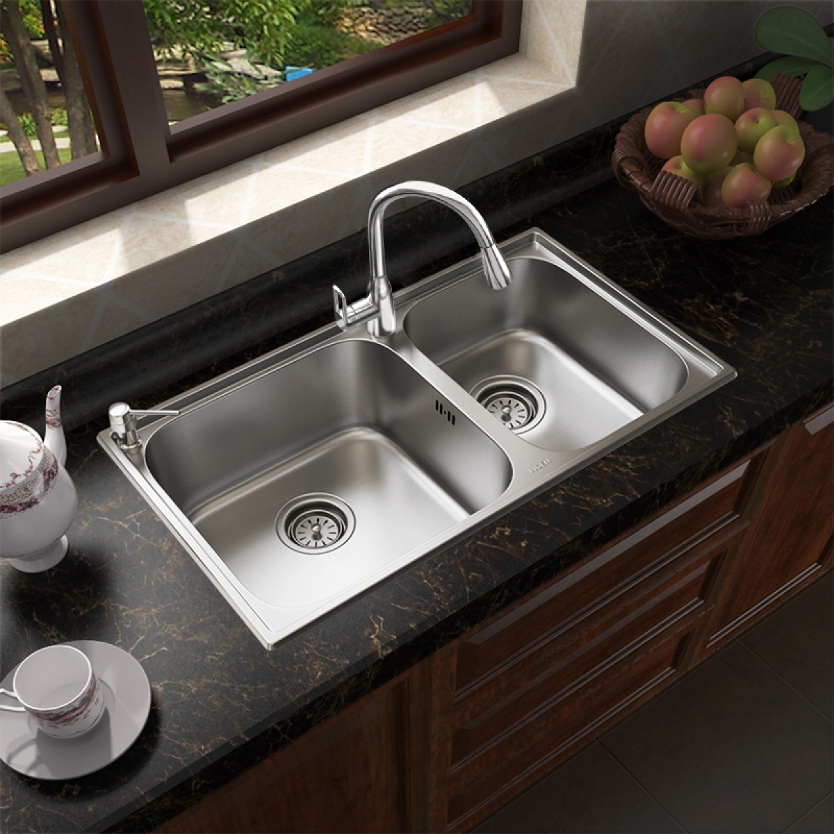 商品名称:摩恩 304不锈钢加厚厨房水槽双槽套餐水龙头洗菜盆台下洗碗盆水池