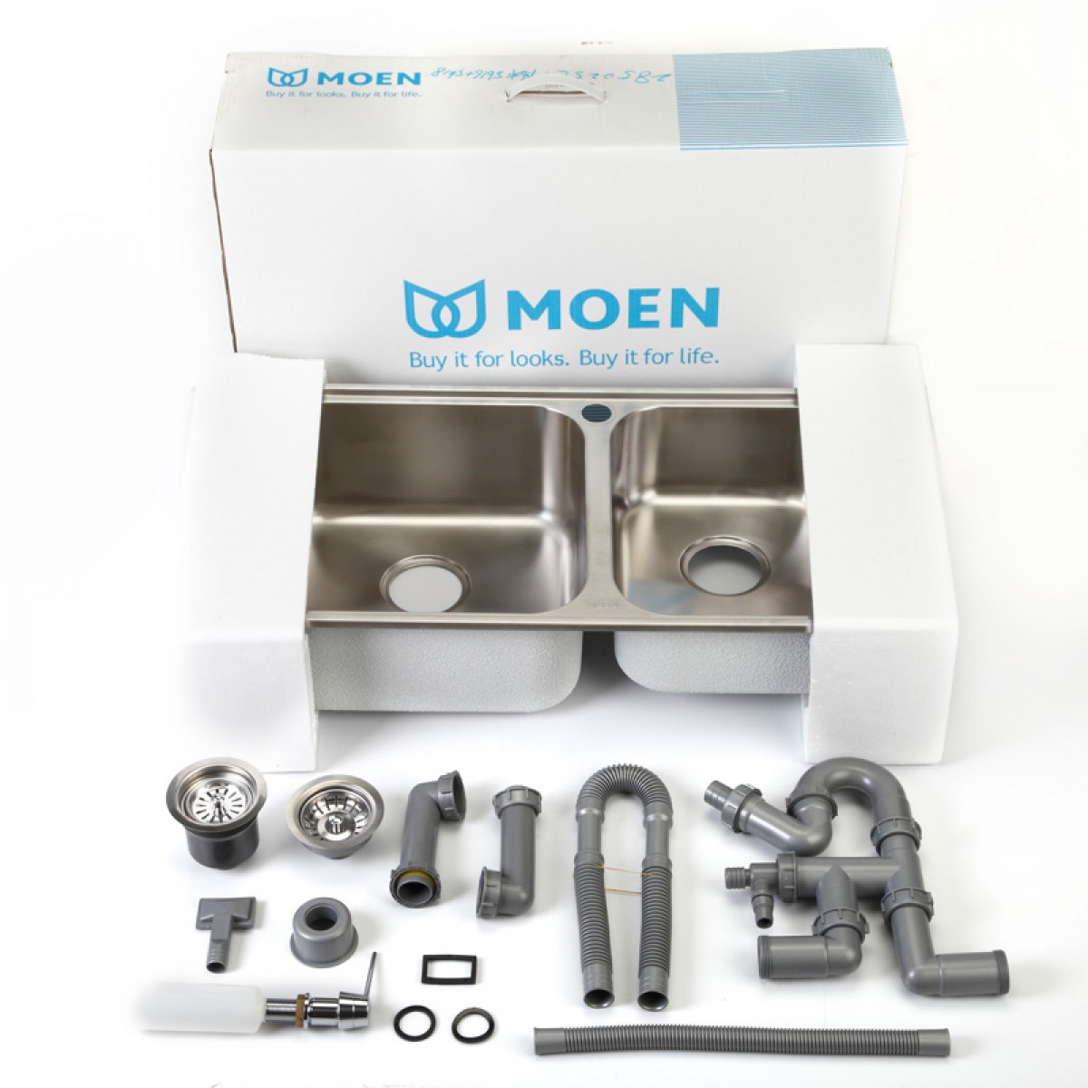 摩恩 304不锈钢加厚厨房水槽双槽套餐水龙头洗菜盆台下洗碗盆水池