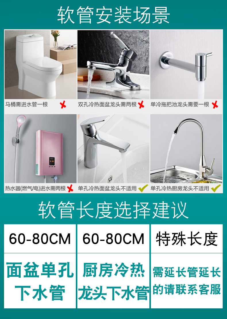 潜水艇 水龙头进水管冷热软管4分上水管304不锈钢金属编织管防爆 50cm