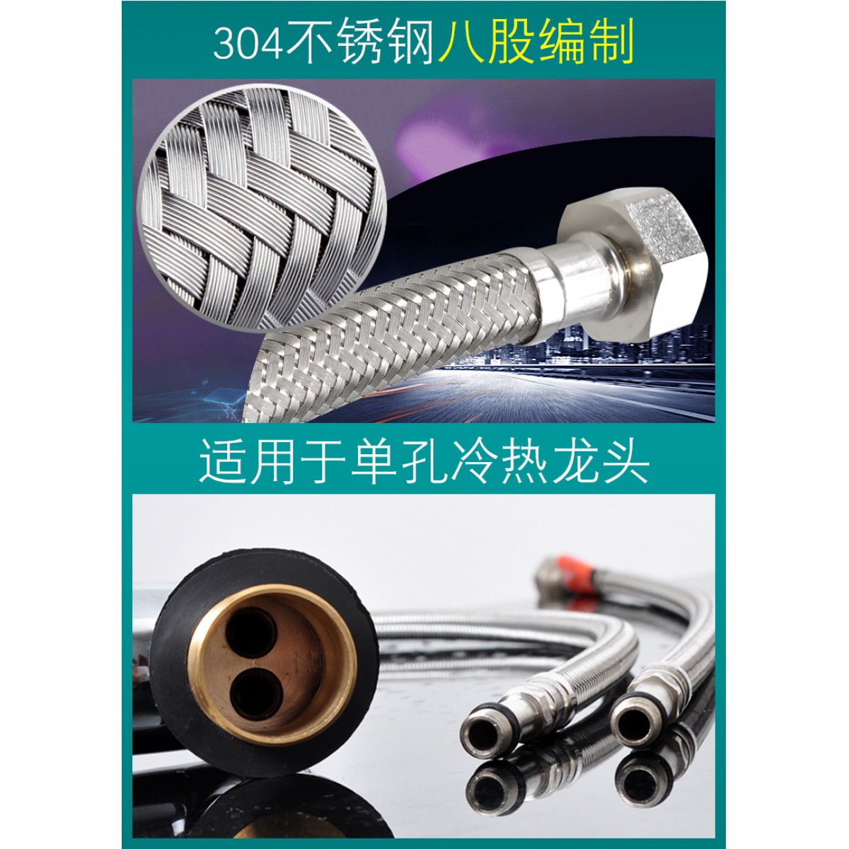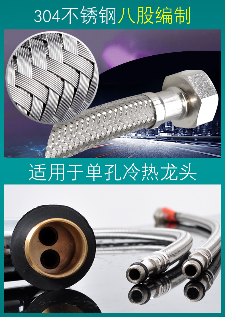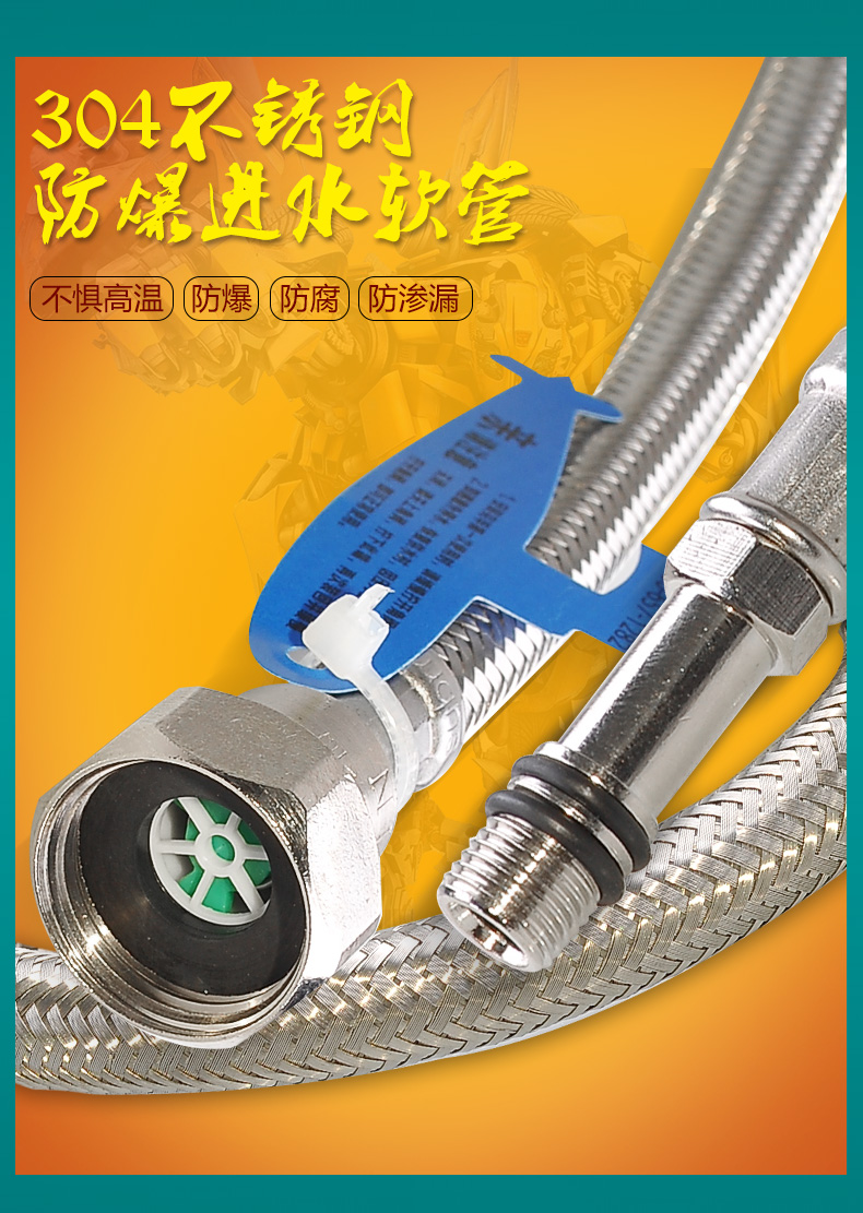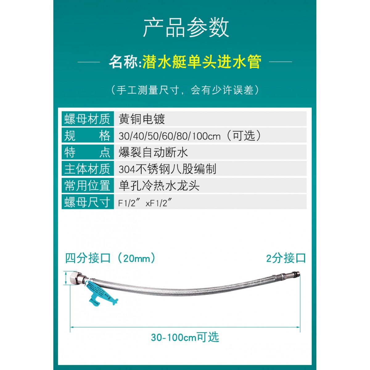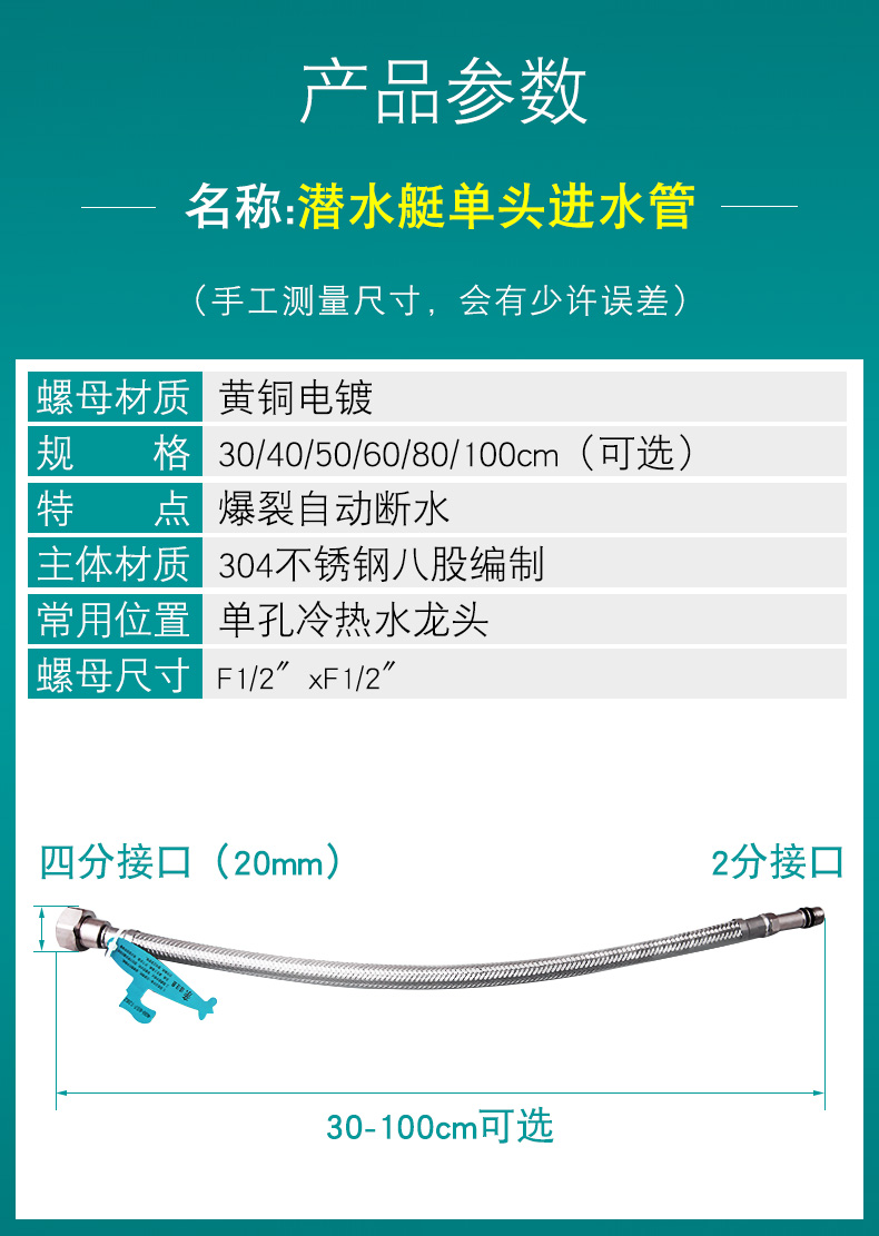 商品名称:潜水艇 水龙头进水管冷热软管4分上水管304不锈钢金属编织管防爆 50cm