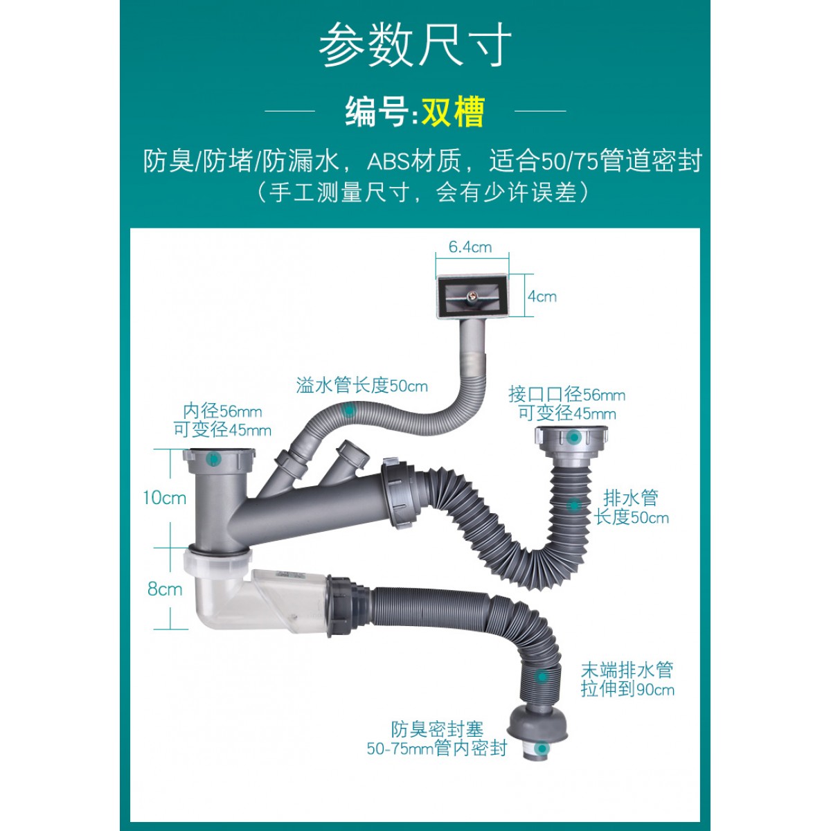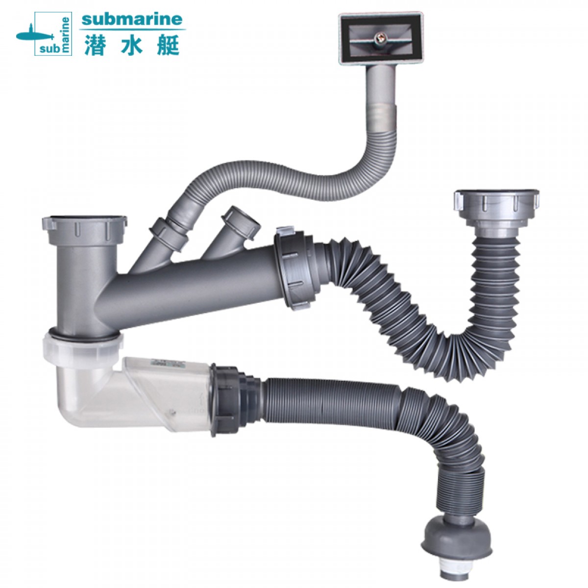 商品名称:潜水艇 水槽下水管双槽 厨房洗菜盆下水器防臭软管提蓝配件套装