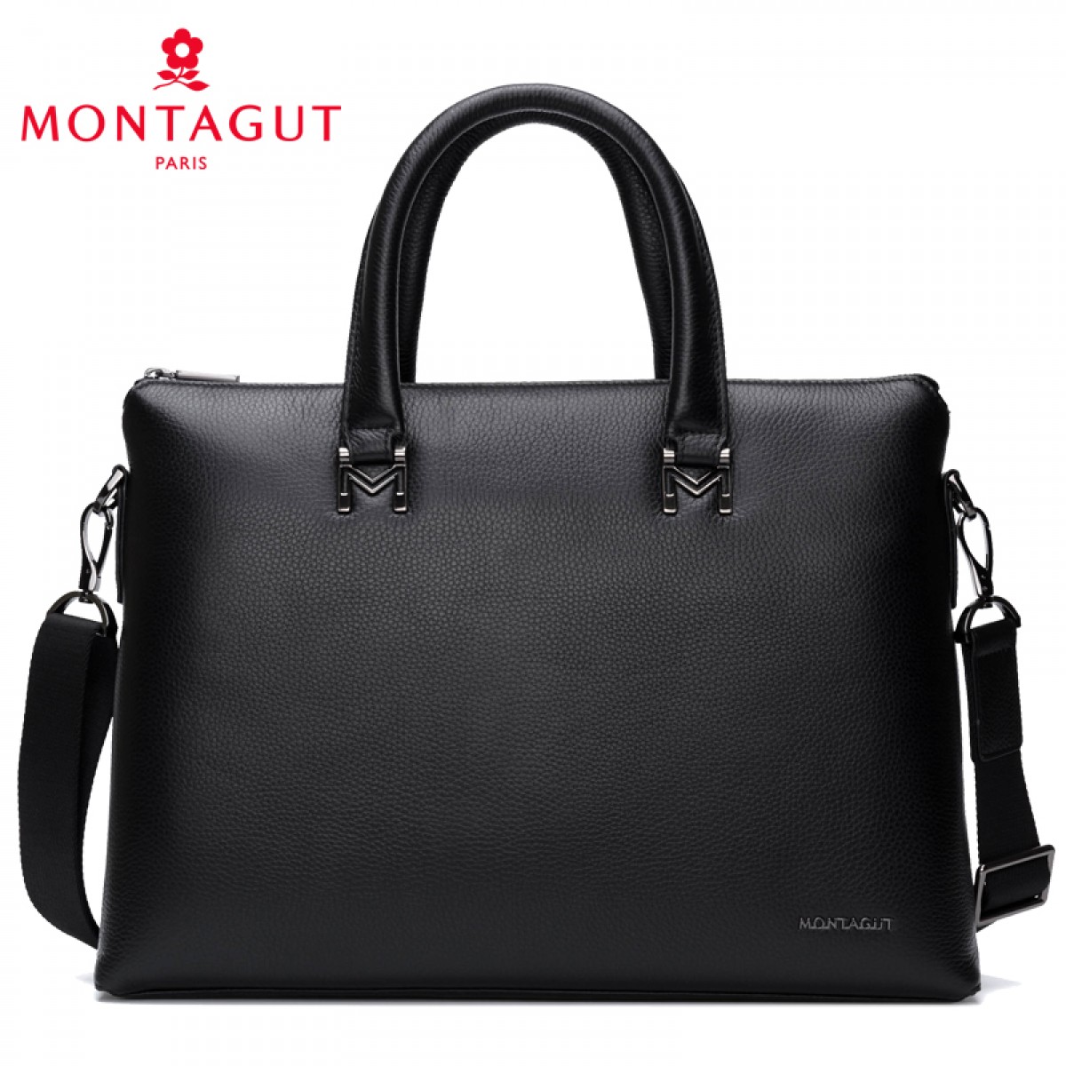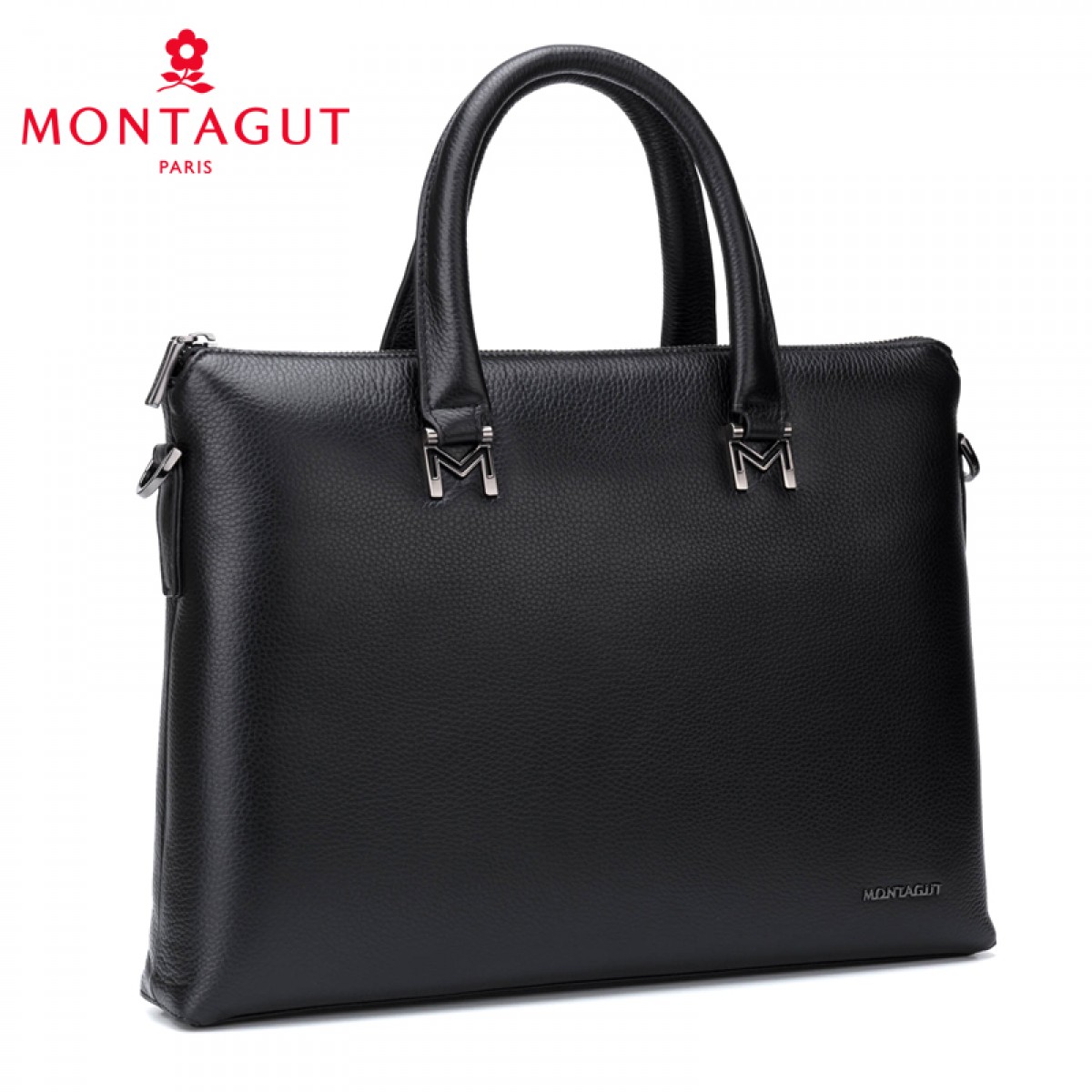 梦特娇 男包新款休闲头层牛皮大容量横款商务斜挎单肩包男士