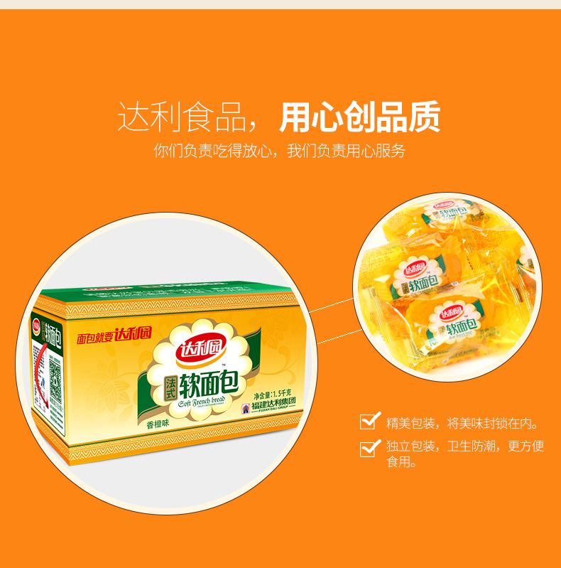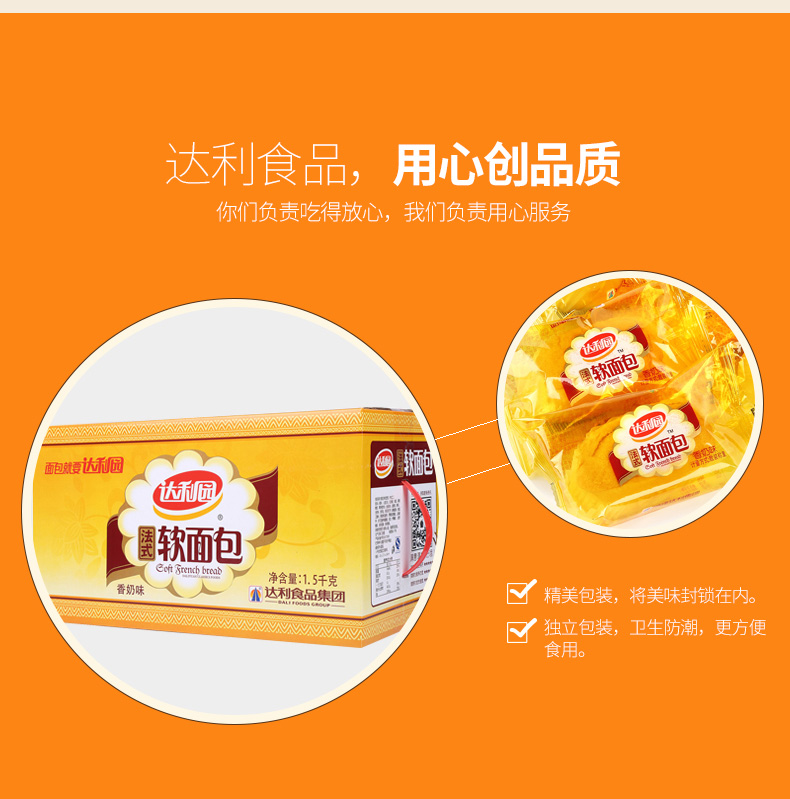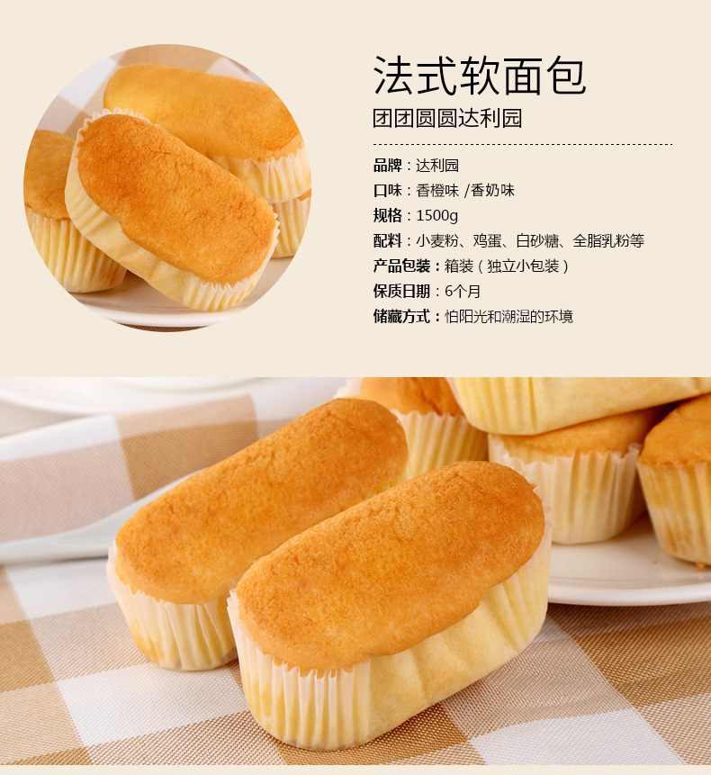 商品名称:达利园 法式软面包1500g零食早餐食品营养糕点瑞士卷小面包整箱