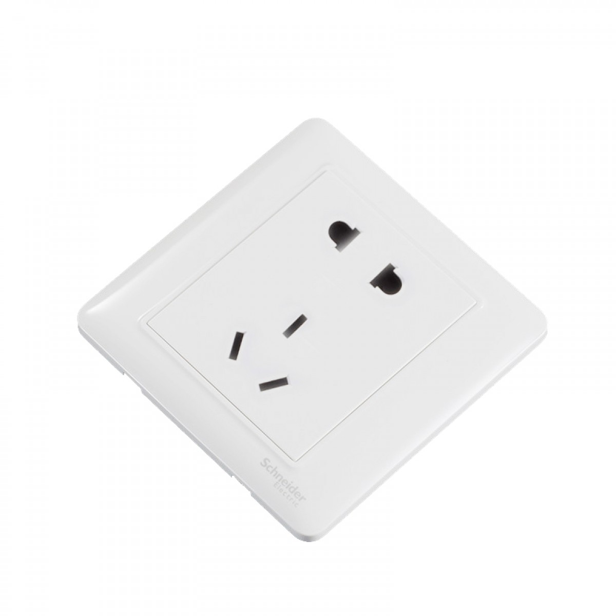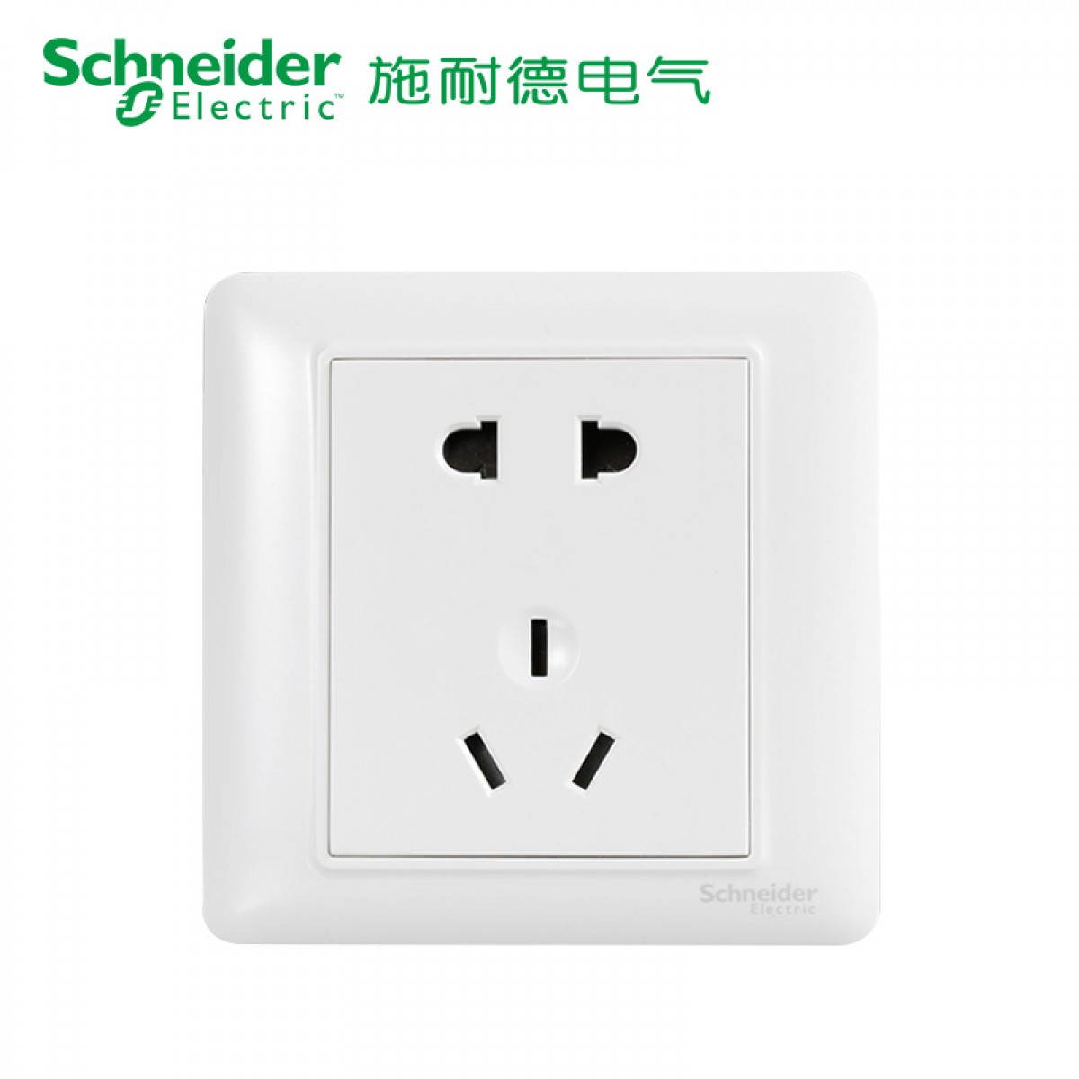 施耐德 开关插座 二三插座 五孔插座10A 墙壁电源插座面板 睿意白